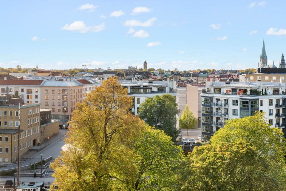 Här bor du med närhet till all service i centrala Linköping, men ändå tyst och avskilt tack vare högt läge och genomtänkt planlösning. När du kliver utanför porten möts du av stadens folkliv – med doften från bageriet Ronaldos, den japanska restaurangen Norika och idylliska Åbacka café alldeles i närheten.
