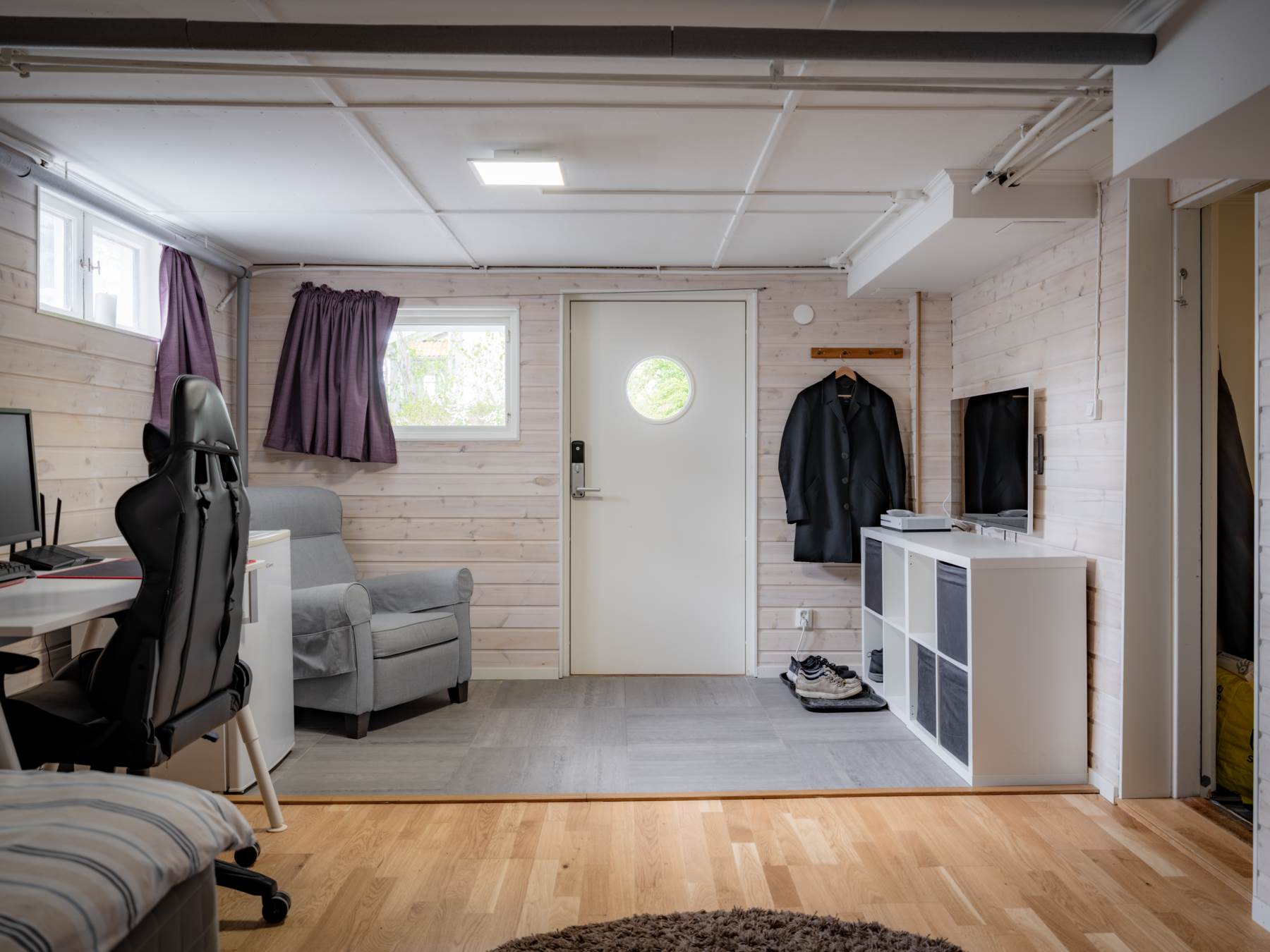 Det privata källarplanet har många fantastiska möjligheter. Nu är det tonårsrum men kan också vara en groventre.