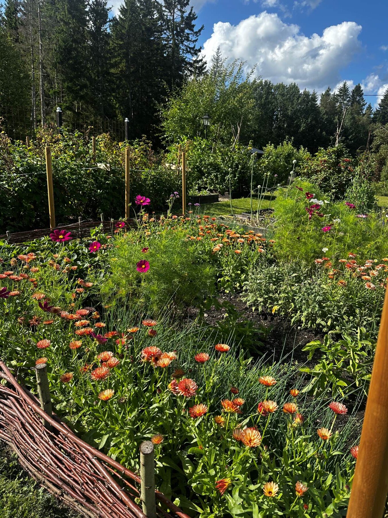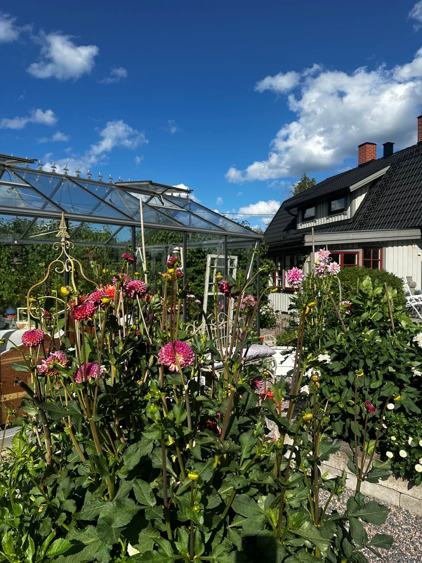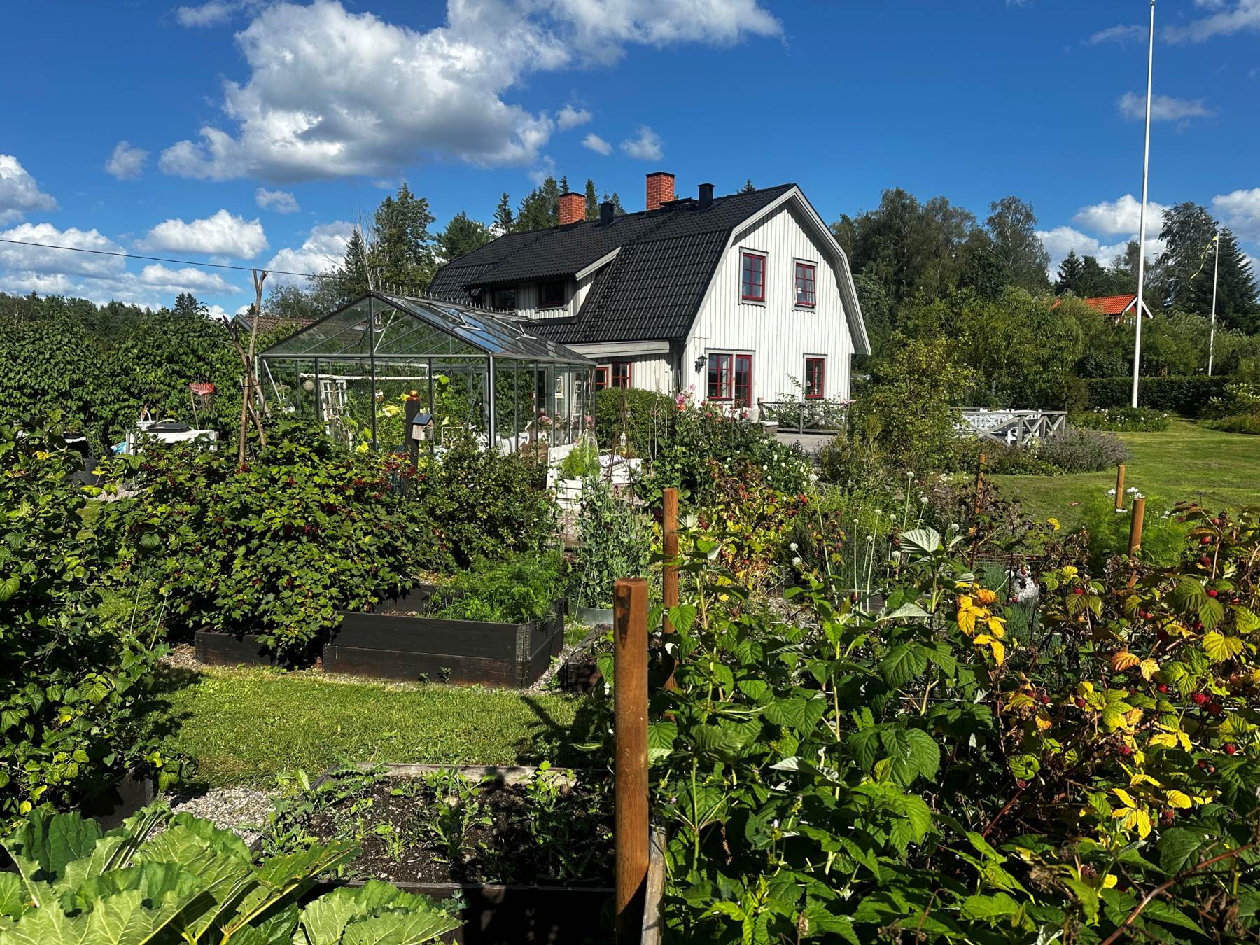 Tomten har fina odlingsmöjligheter och här har du även ett vackert växthus. Ett gästhus finns på tomten som även kan byggas om till bastu om så önskas. Det är väldigt fin utsikt över ängsmark från denna.