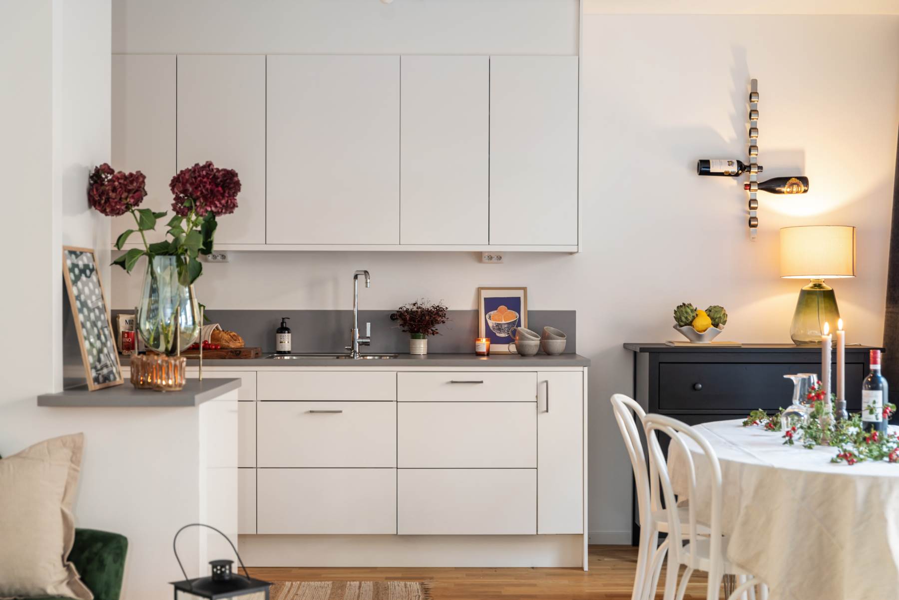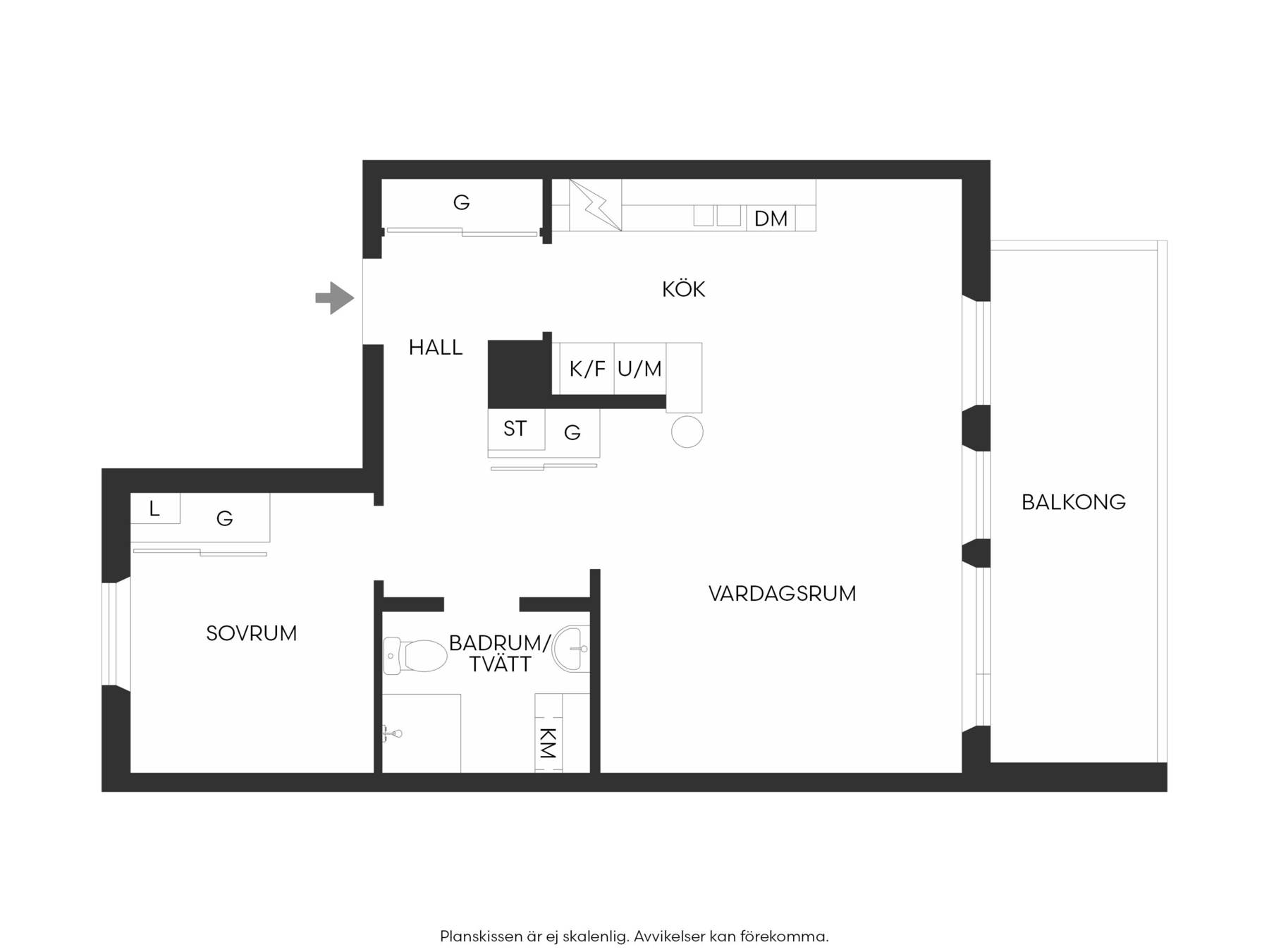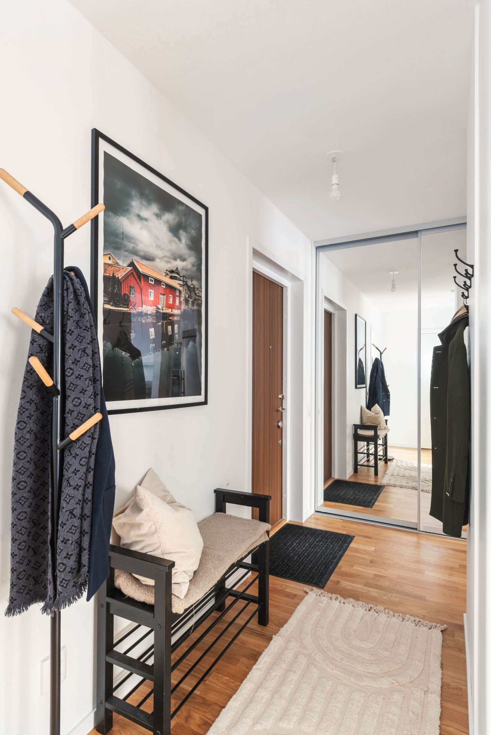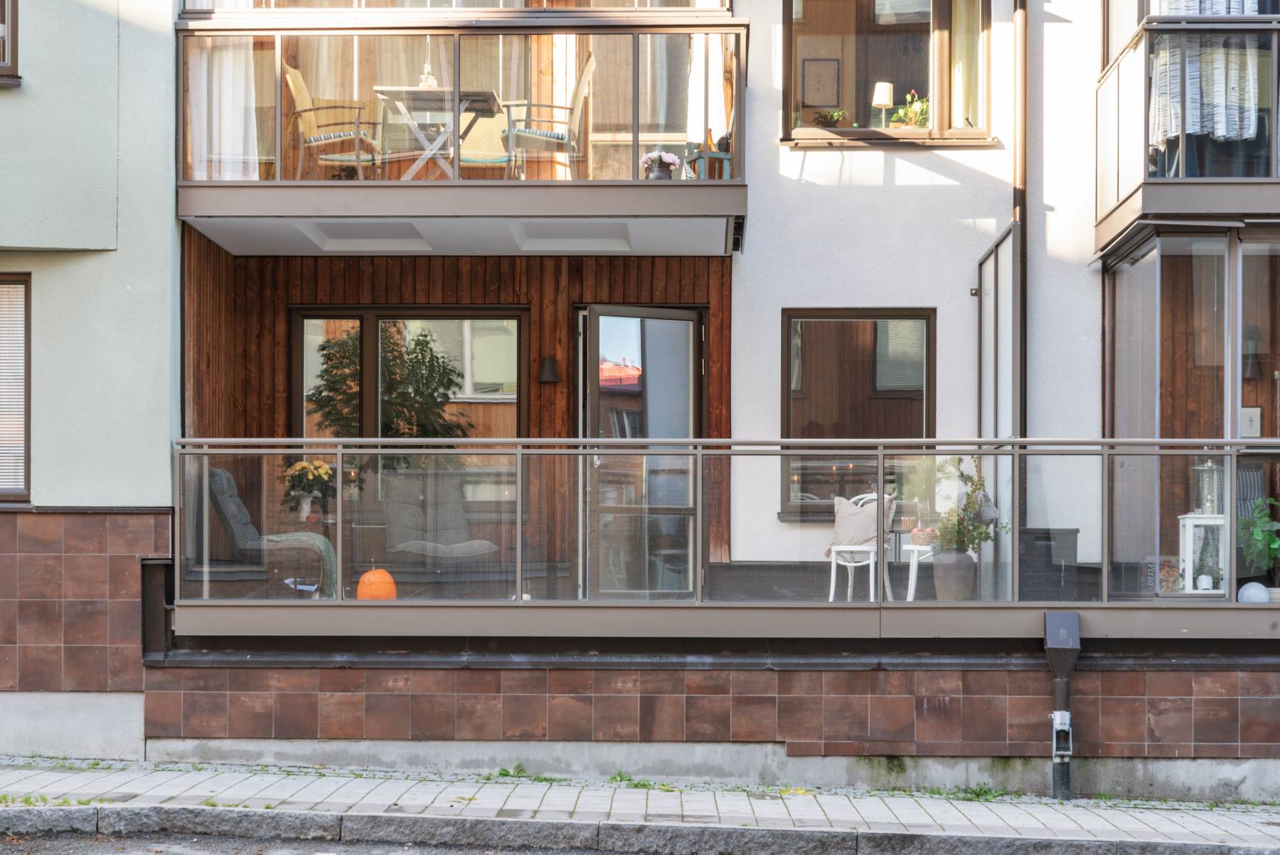Bostaden erbjuder en mycket välplanerad planlösning där varje kvadratmeter används optimalt. Kök och vardagsrum ligger i en halvt öppen planlösning, perfekt avvägt för att köket ska få vara just ett kök, medan soffgrupp och matplats hittar sin naturliga plats i det ljusa vardagsrummet. Härifrån når du även balkongen, där flera boende i föreningen valt att glasa in för att kunna njuta av den större delen av året.