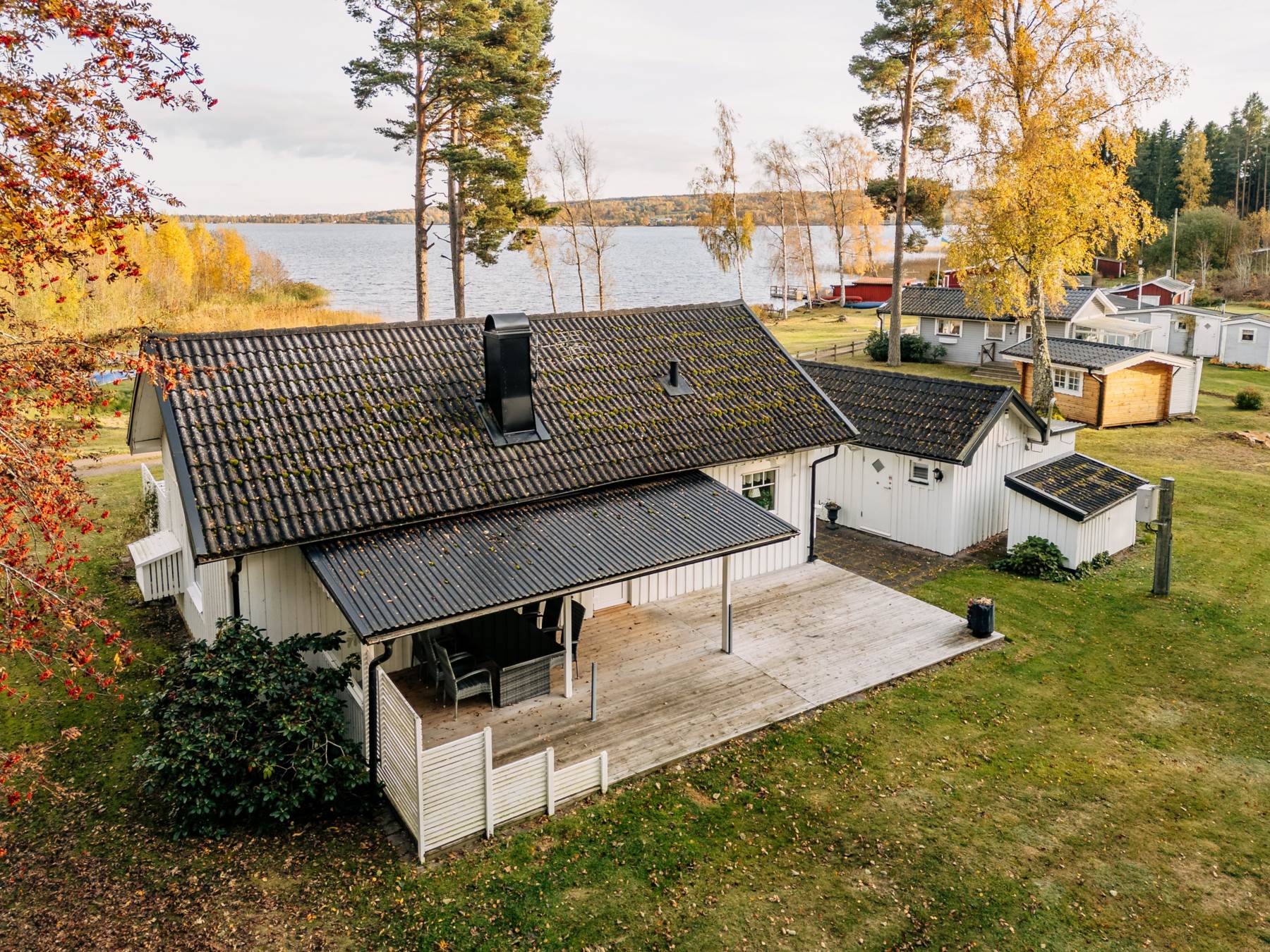 Här i Smedsskogen lever du gott i ert semesterparadis. På en lummig arrendetomt alldeles intill Mullsjön ligger detta lyxiga fritidshus med gott om plats för familjen. Stugan erbjuder ett ljust och fint kök, ett ljust och luftigt vardagsrum med utgång till trädäck samt ett sovloft med gott om plats för övernattande gäster. På entéplan finns ett mindre sovrum med plats för säng.