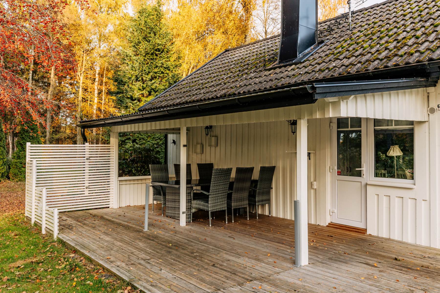 På bara ett par få steg når du såväl morgondopp före frukost som kvällsdoppet efter middagen. Husets baksida är insynsskyddad och här ges gott om plats för lek för barn med spring i benen. Dessutom finns uteplatser i flera väderstreck för att ta tillvara på dygnets soltimmar i gott sällskap.