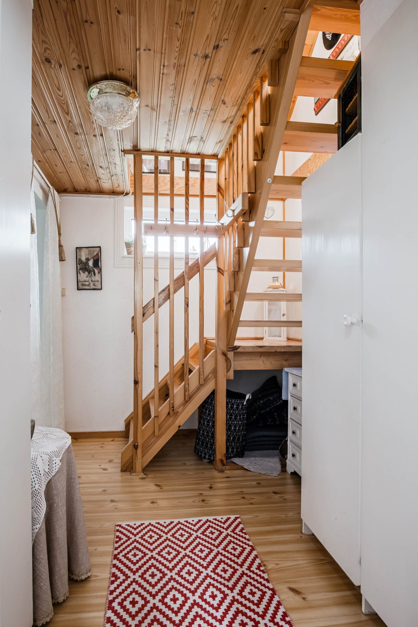 Stugan erbjuder ett ljust och fint kök, ett ljust och luftigt vardagsrum med utgång till trädäck samt ett sovloft med gott om plats för övernattande gäster. På entéplan finns ett mindre sovrum med plats för säng.Utöver stugan finns en byggnad med garage, förråd samt badrum.