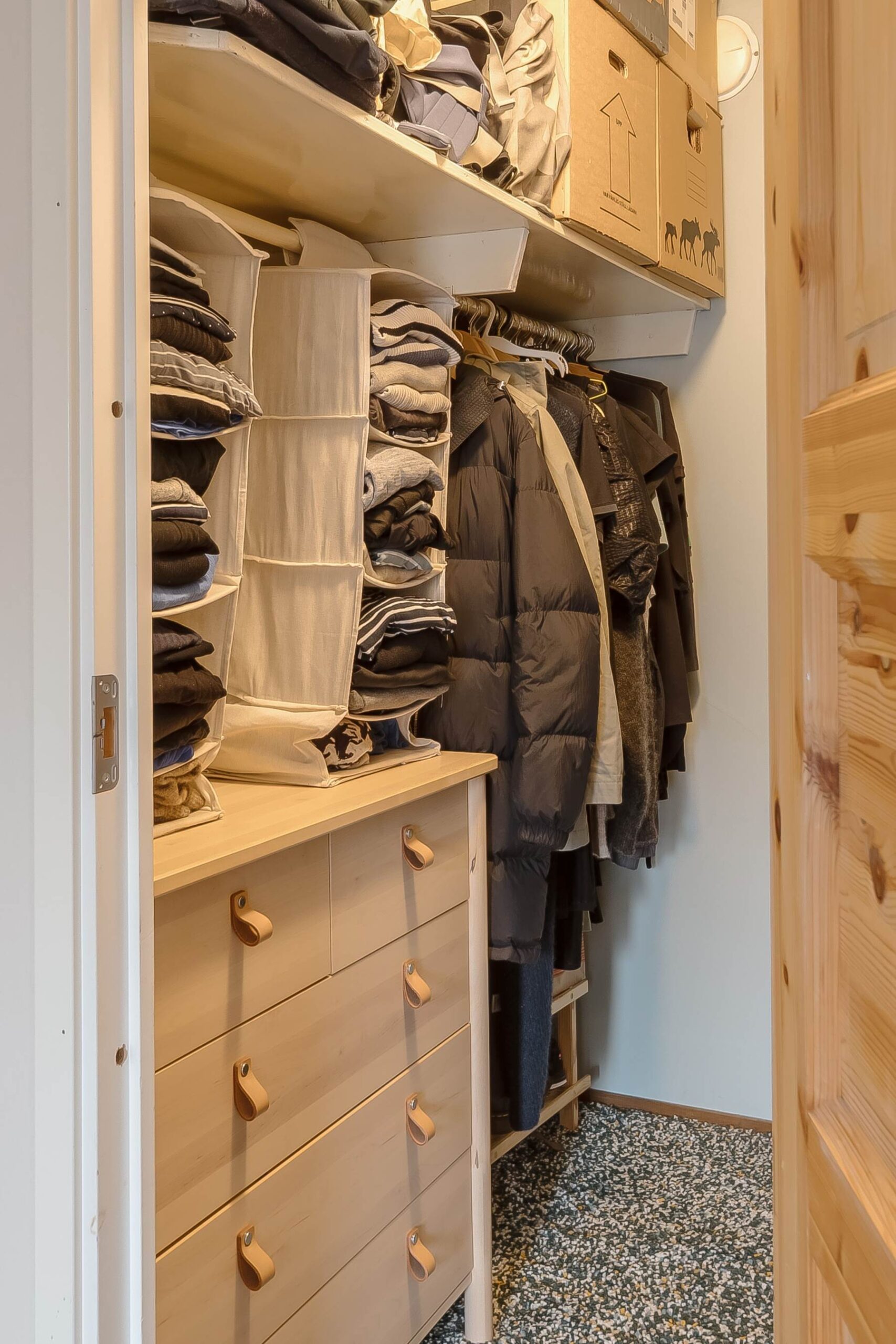 Rymlig klädkammare med gott om förvaringsutrymme.