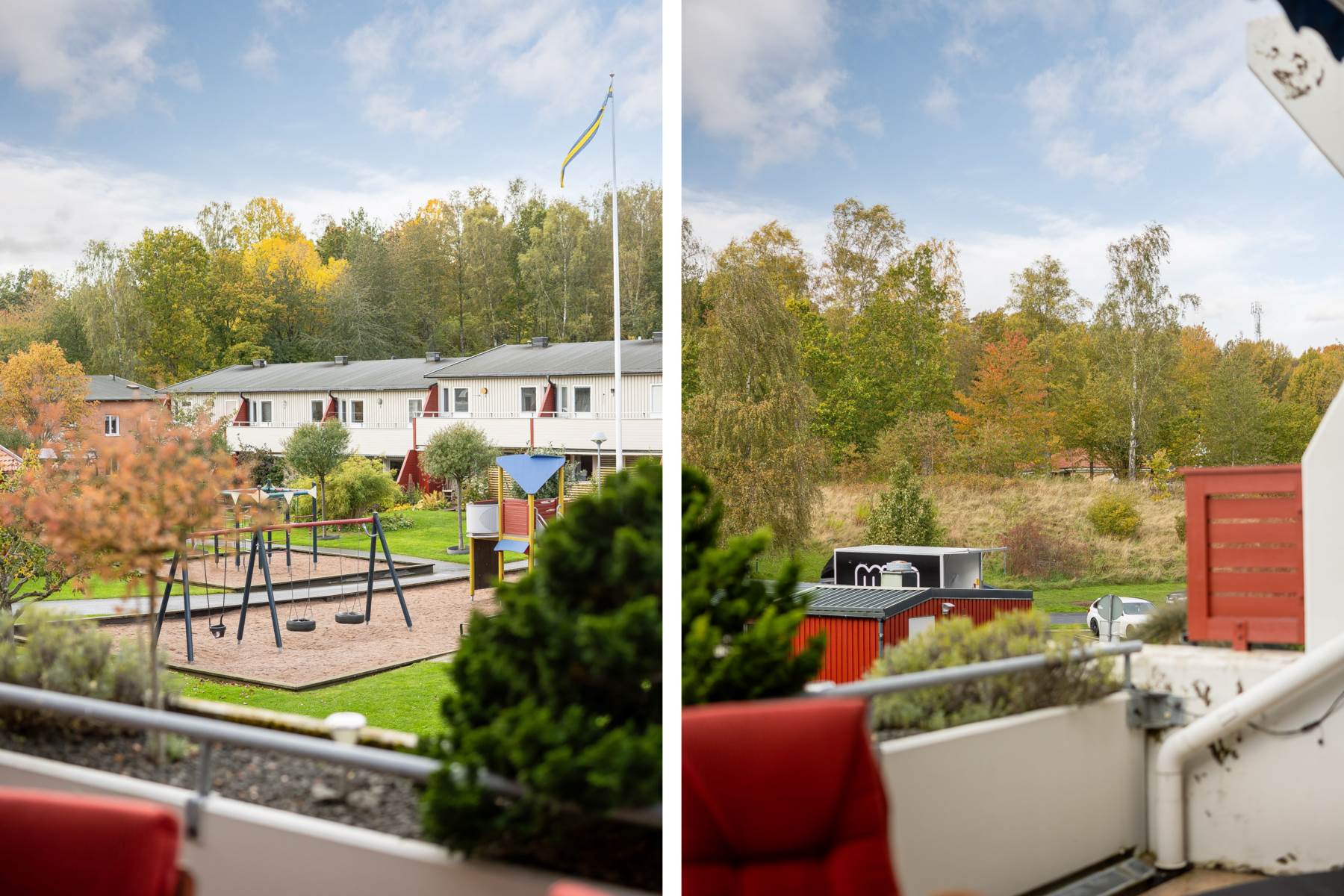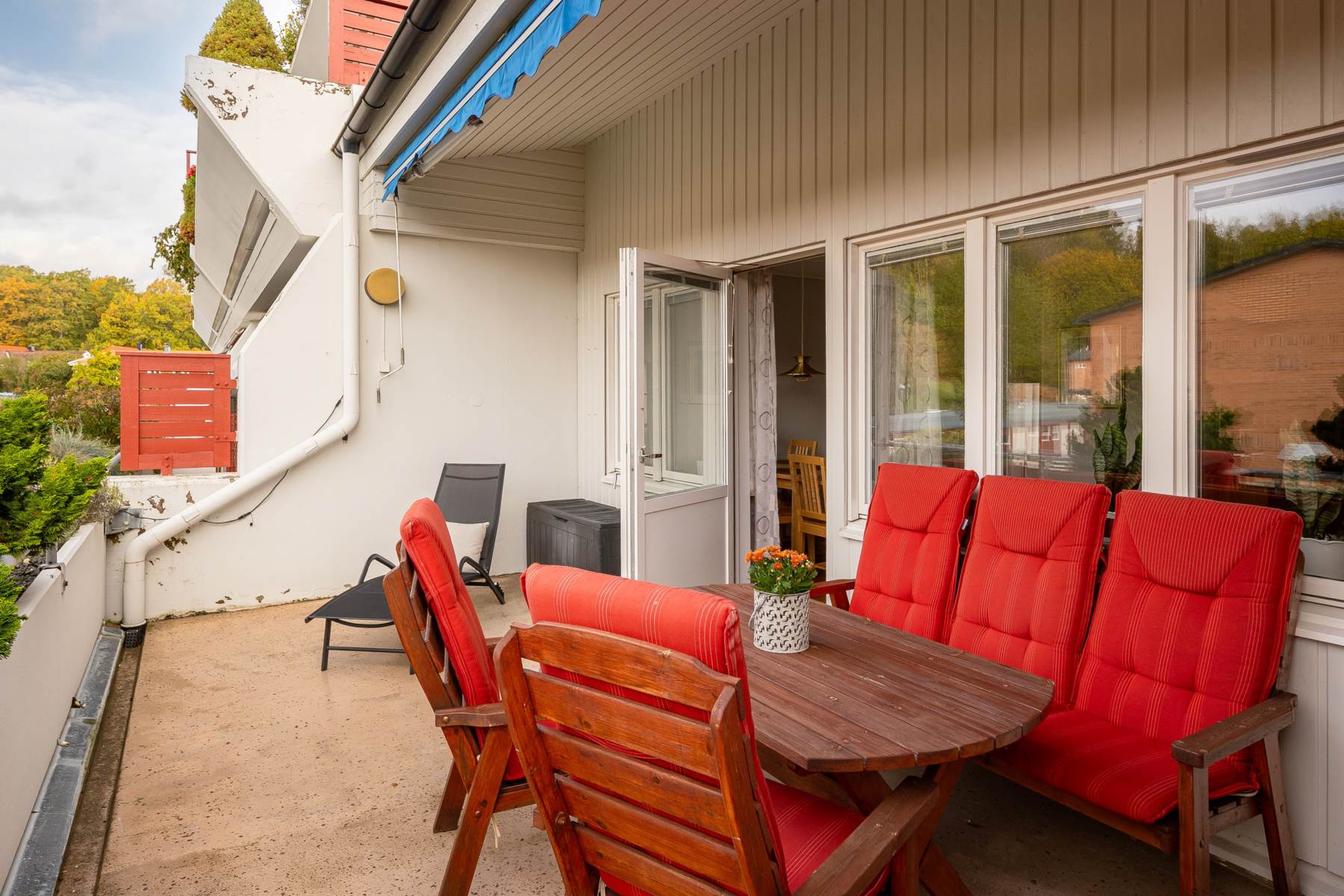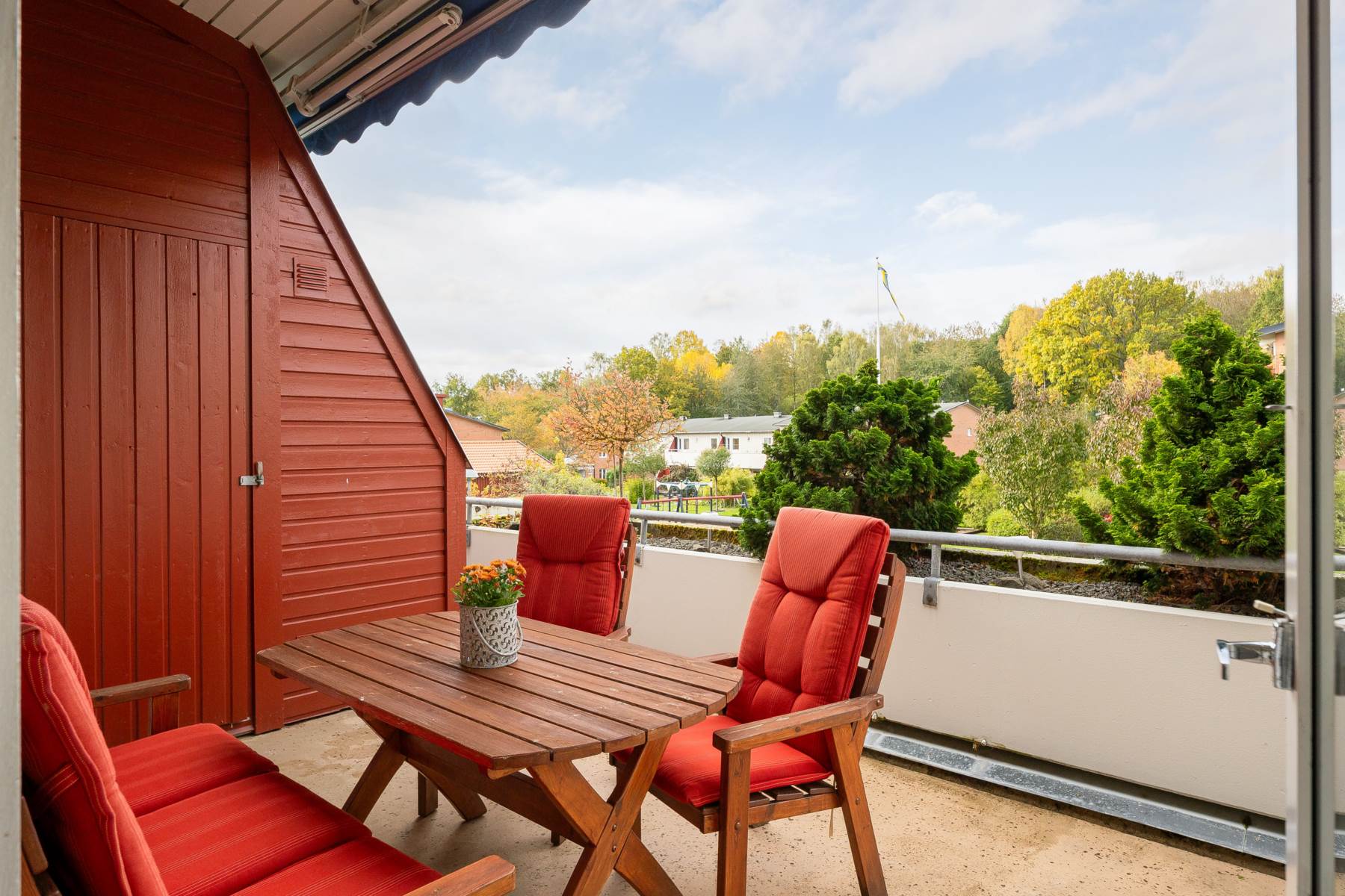 Bostaden erbjuder fyra välplanerade rum och kök med en härligt öppen planlösning mellan kök och vardagsrum – perfekt för sociala middagar, familjemys eller festliga kvällar med vänner. Från vardagsrummet kliver du rakt ut på den stora terrassen, en riktig oas med plats för både loungemöbler, grill och blomstrande växter. Här njuter du av soliga dagar och magiska kvällar med utsikt över det grönskande området.