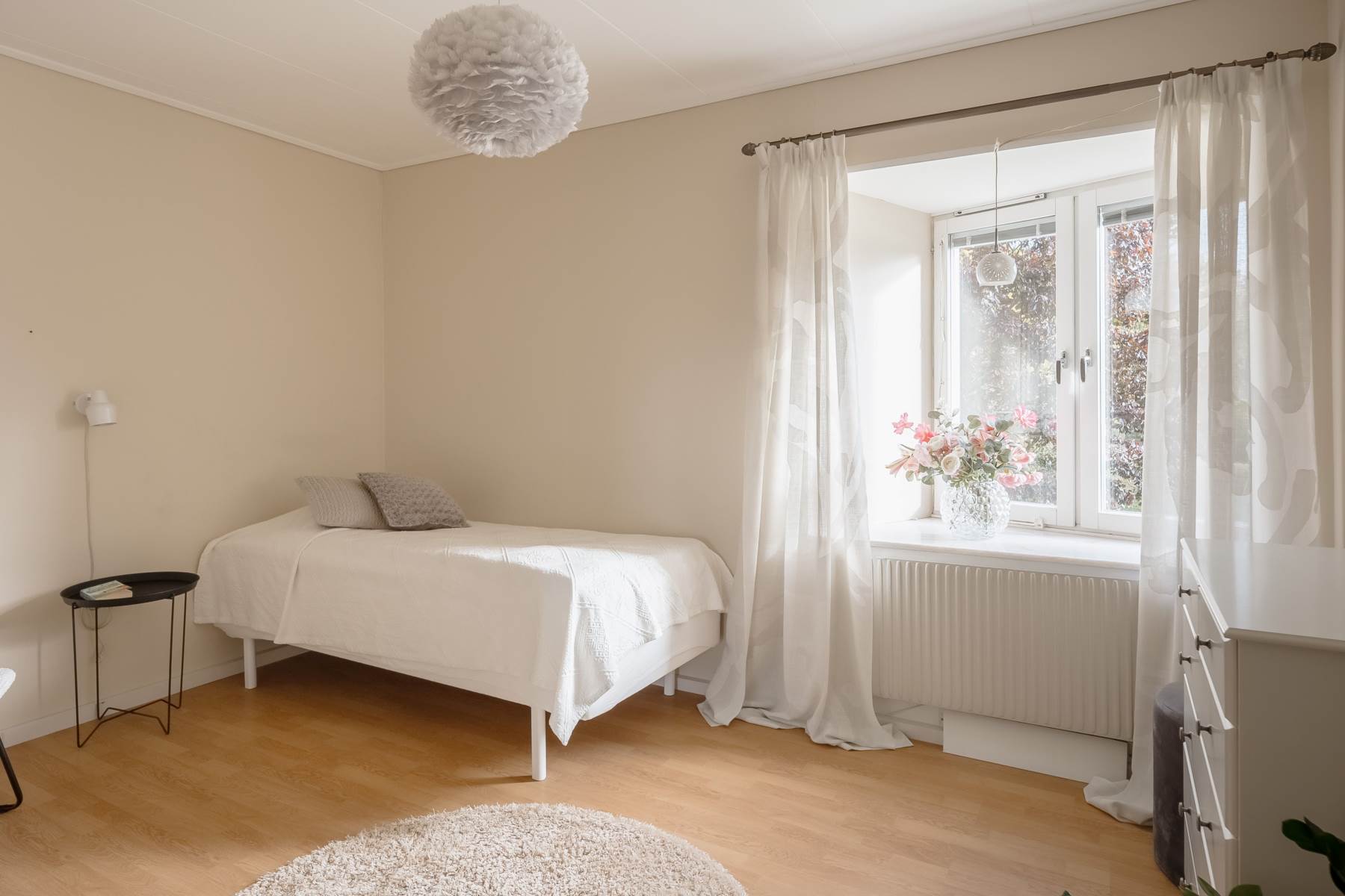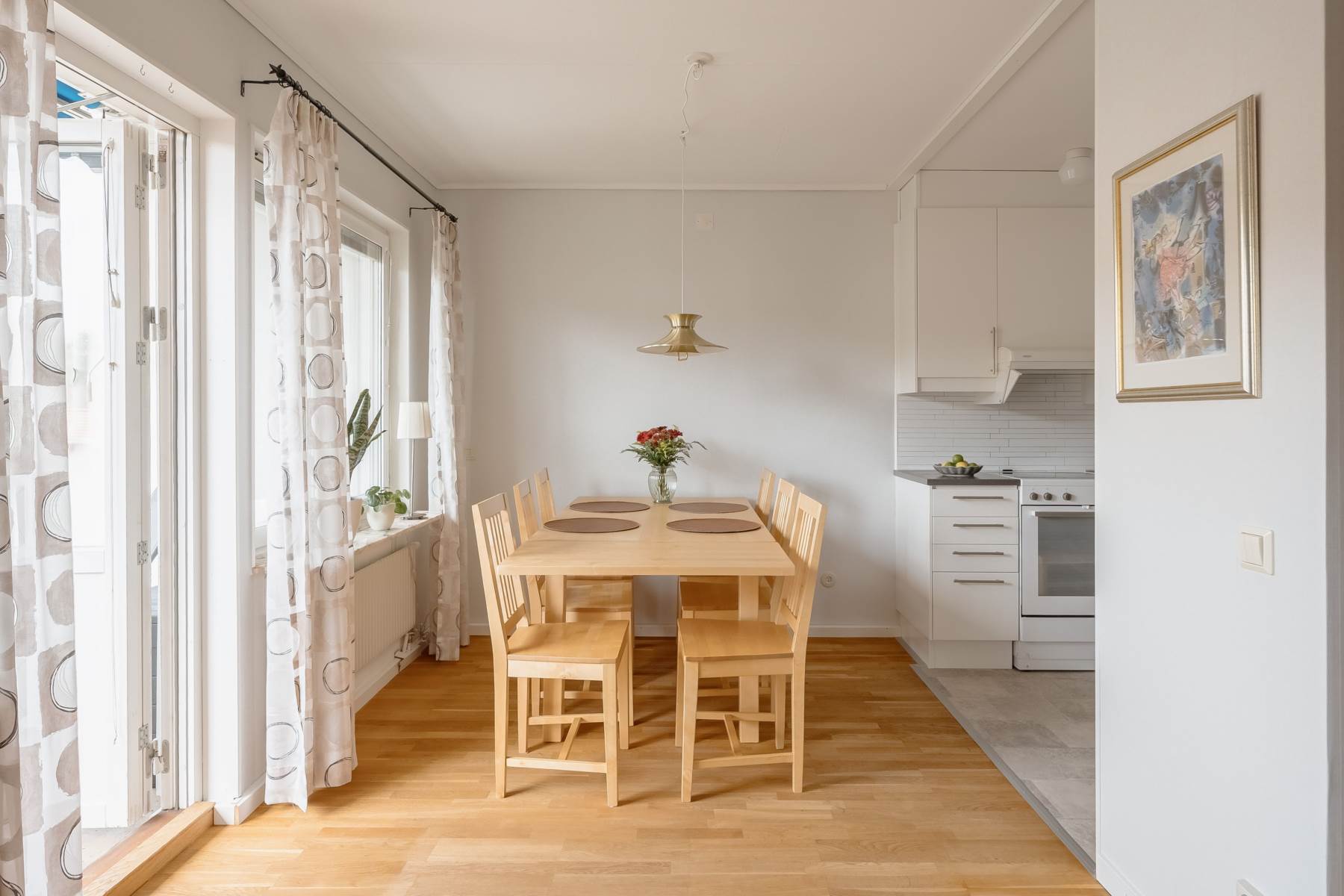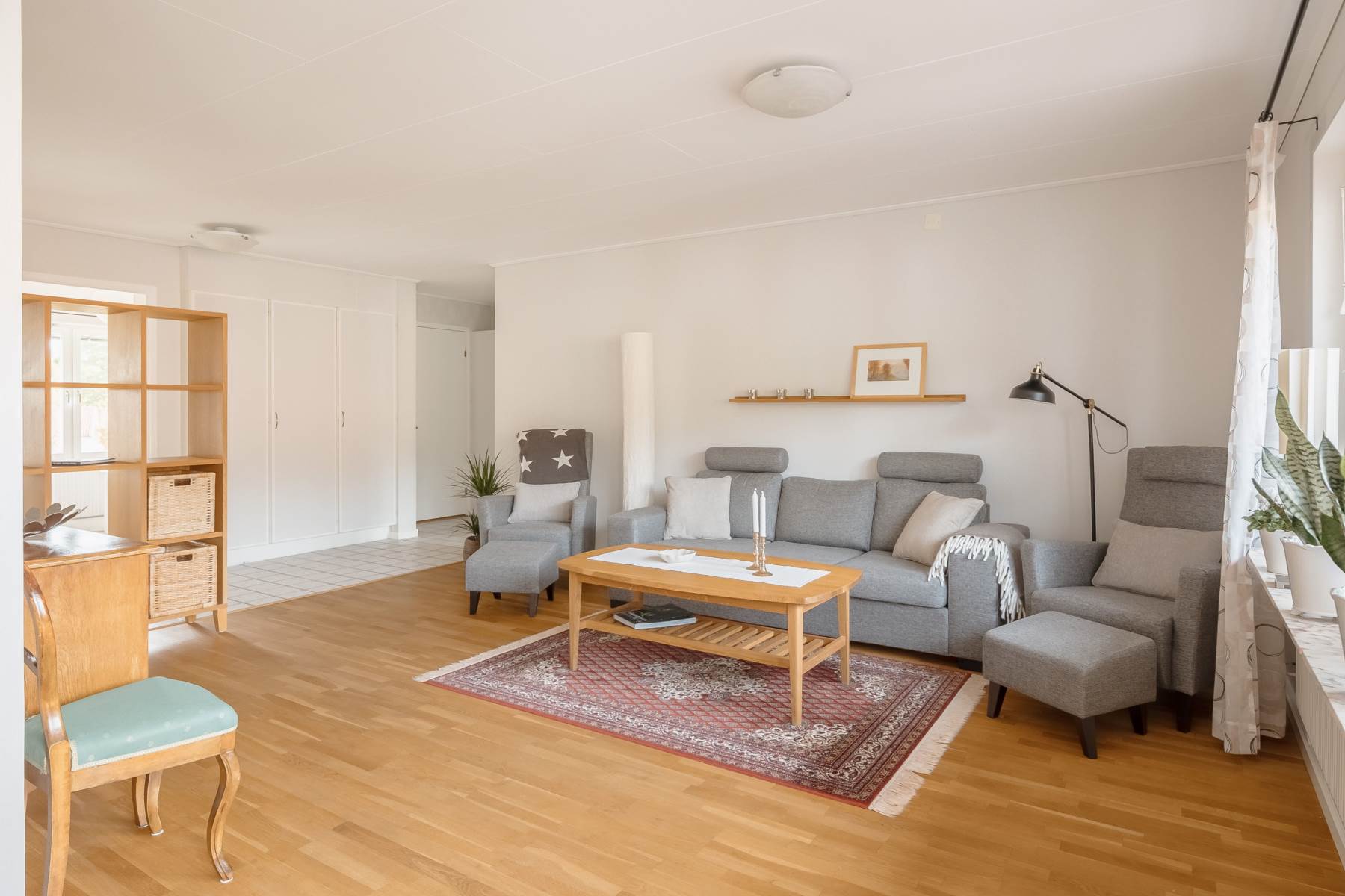Här får du ett hem med harmonisk atmosfär, generösa ytor och en känsla av frihet, samtidigt som du har nära till förskola, skola, natur och city.
