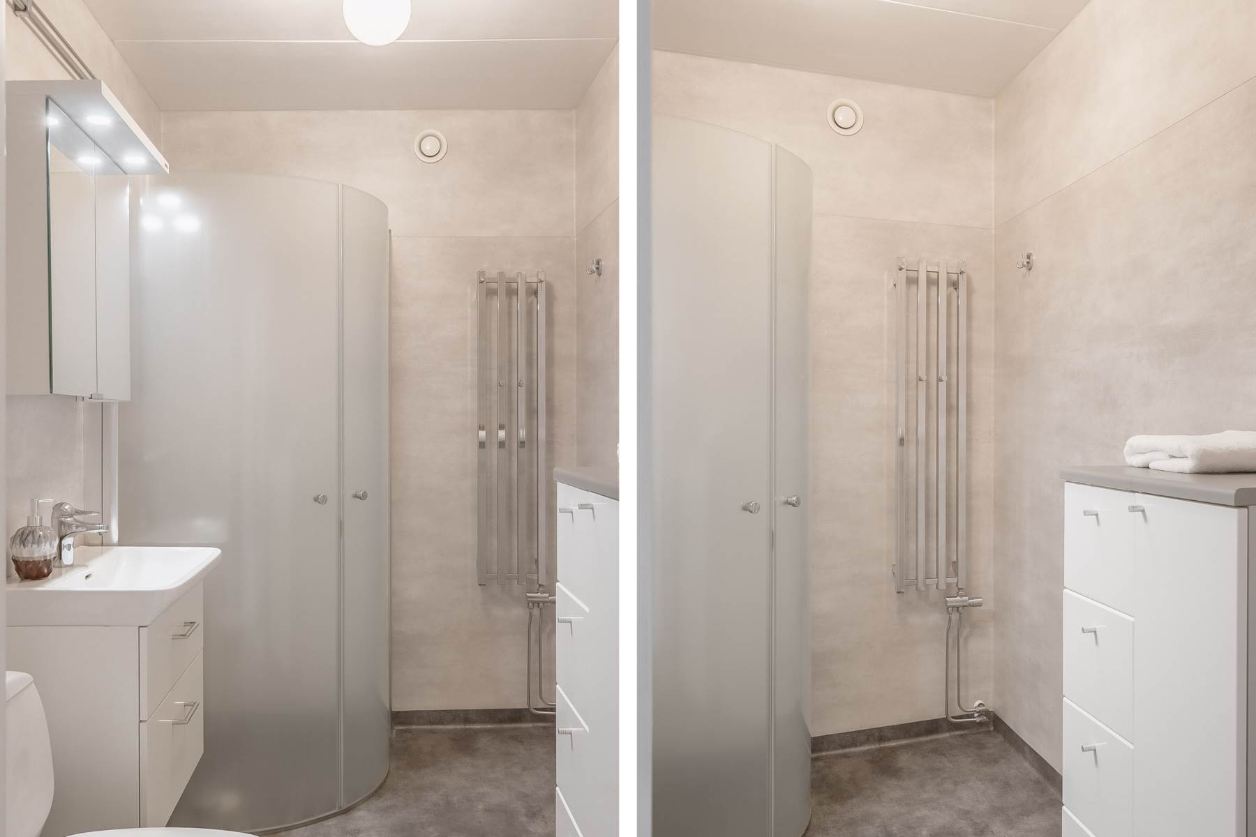 Det renoverade badrummet bjuder på moderna material som faller de flesta i smaken, medan det andra badrummet/tvättstugan ger dig möjlighet att sätta din egen prägel.