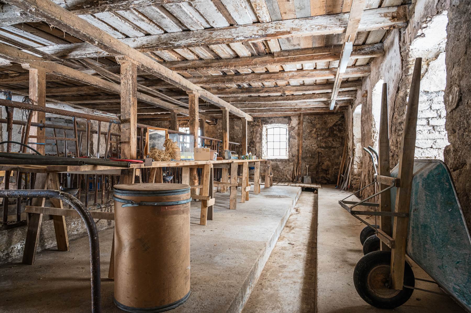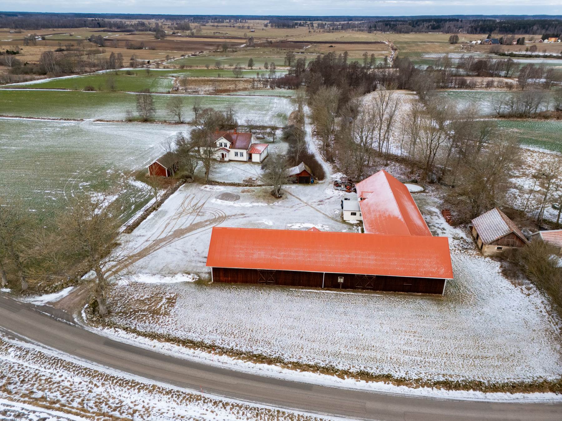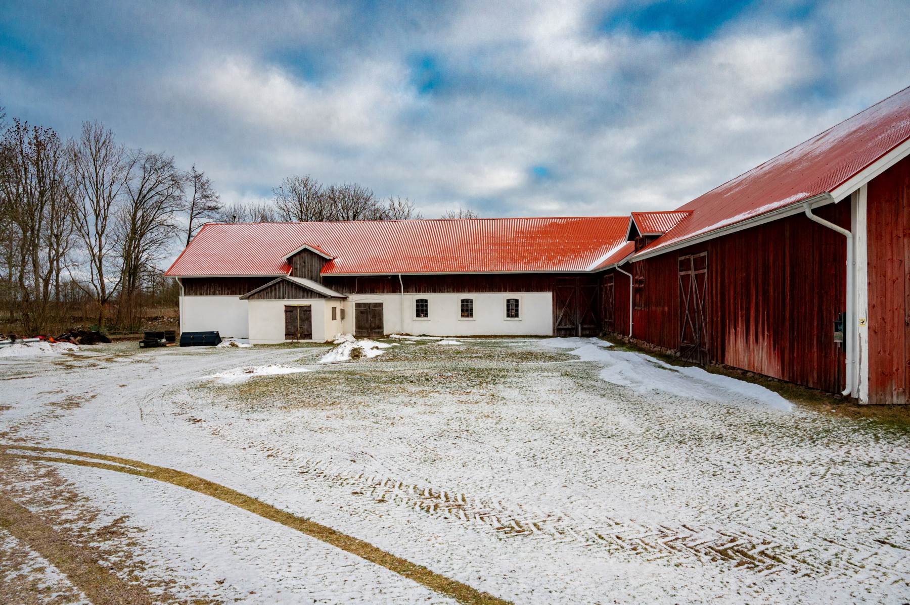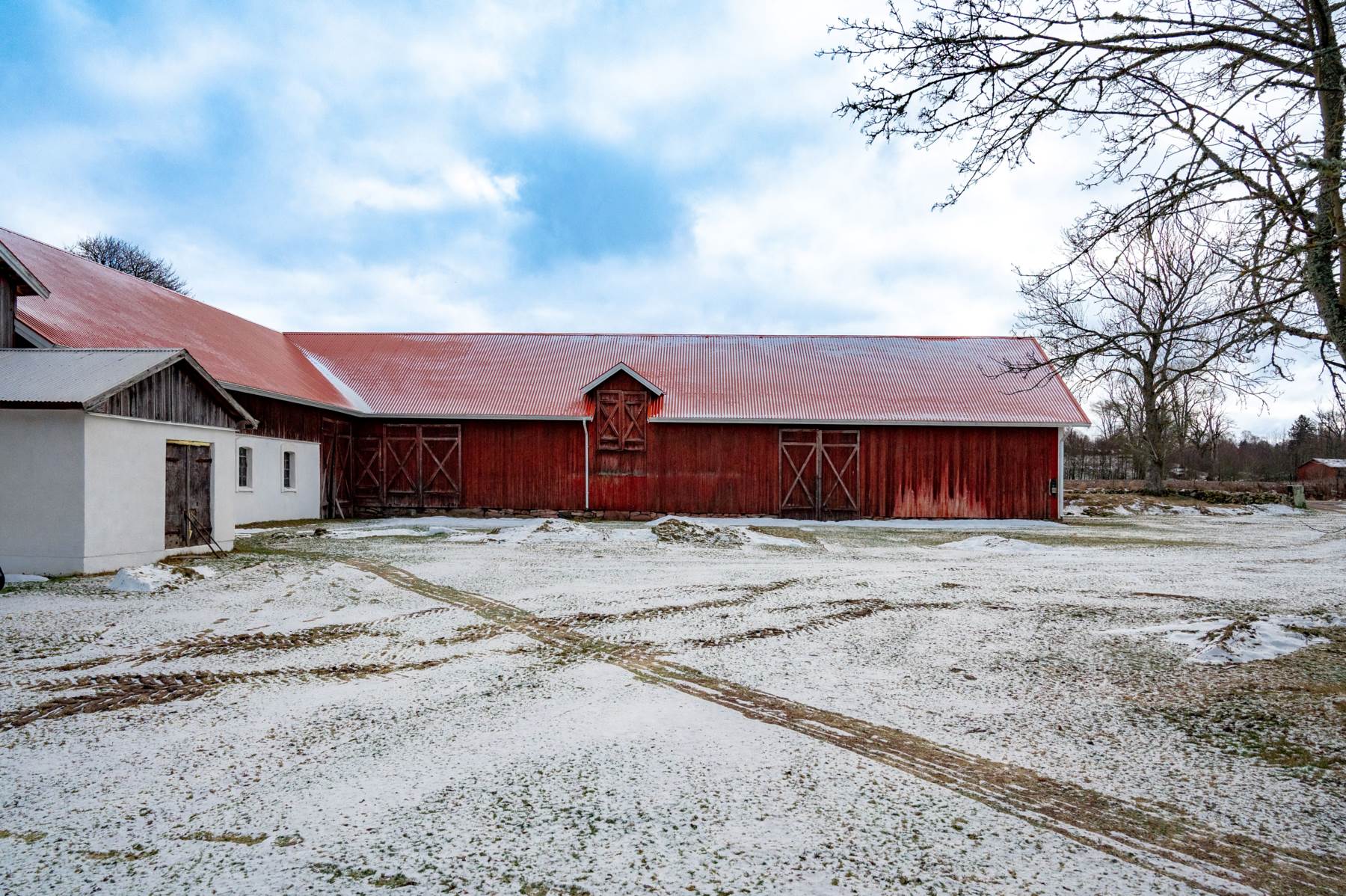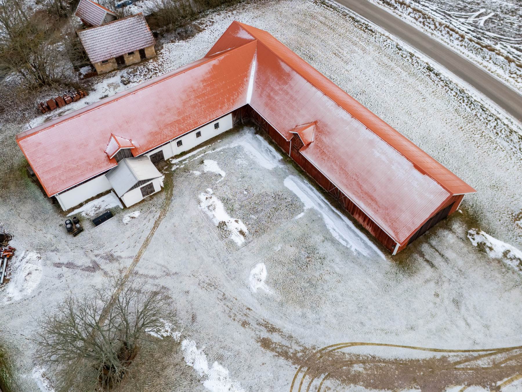 Den vackra ladugårdsbyggnaden utgör en självklar del av gårdsbilden. Med sitt nya tak står den redo för framtiden och erbjuder fina möjligheter för den som önskar återta byggnaden för djurhållning eller annan verksamhet. På baksidan finns en gödselplatta, praktiskt placerad och väl anpassad för gårdens drift. Utöver marken runt gården tillhör även ytterligare skiften med bete och skog, vilket skapar goda förutsättningar för både djur, brukande och rekreation.