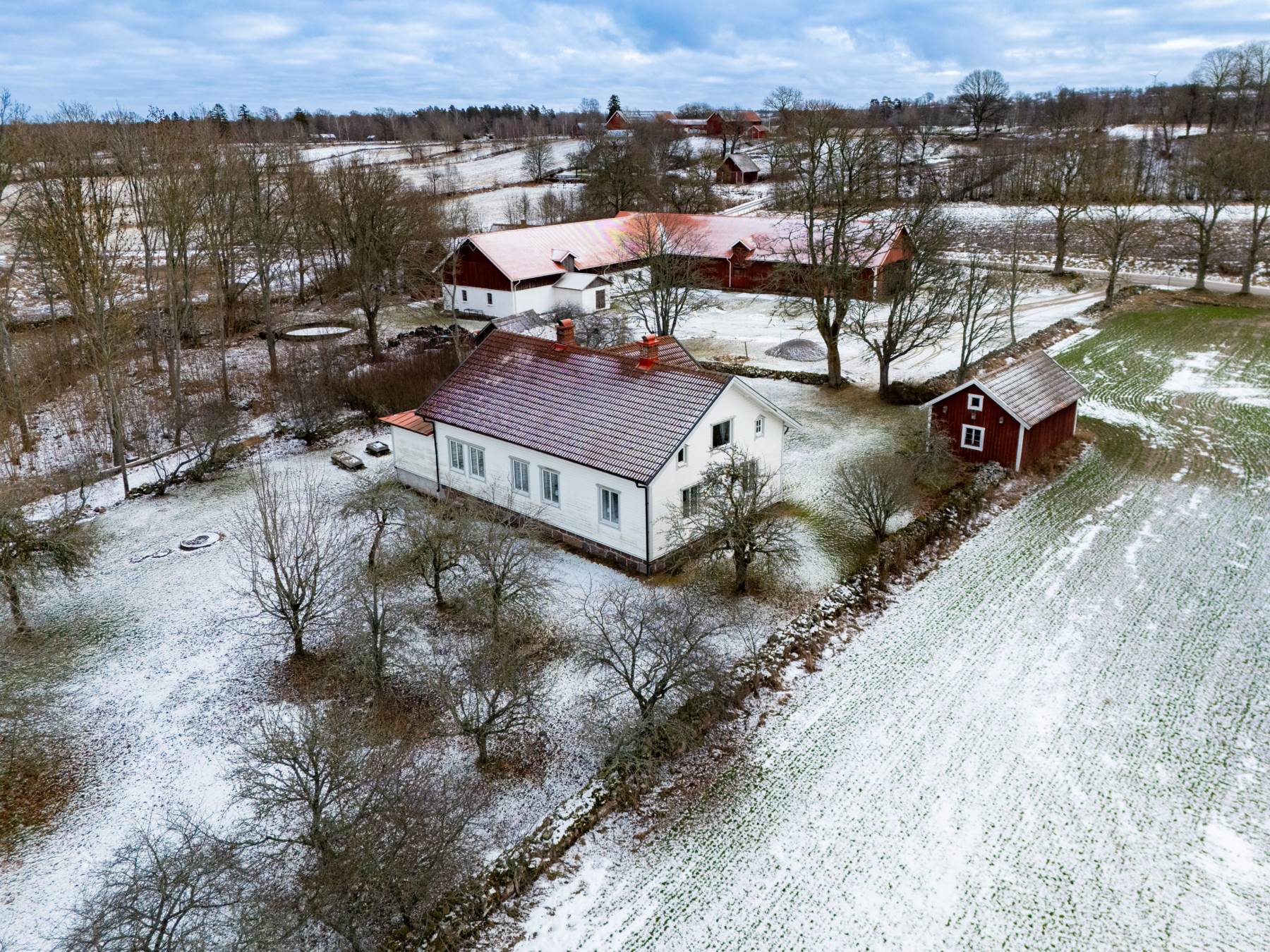 I det öppna, böljande landskapet i Ugglum strax utanför Falköping ligger denna gård varsamt inbäddad i naturen – en plats där stillheten får ta plats och där landsbygden visar sig från sin allra vackraste sida. Här samsas åker, bete och skog i en trivsam och levande variation, med ett sammanhängande skifte som mjukt omfamnar gårdscentrum. Intill fastigheten slingrar sig en bäck, vars porlande ljud ger liv och ro åt omgivningen och förstärker känslan av att tiden rör sig lite långsammare här.