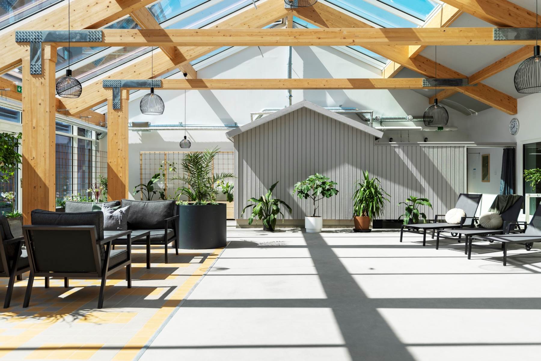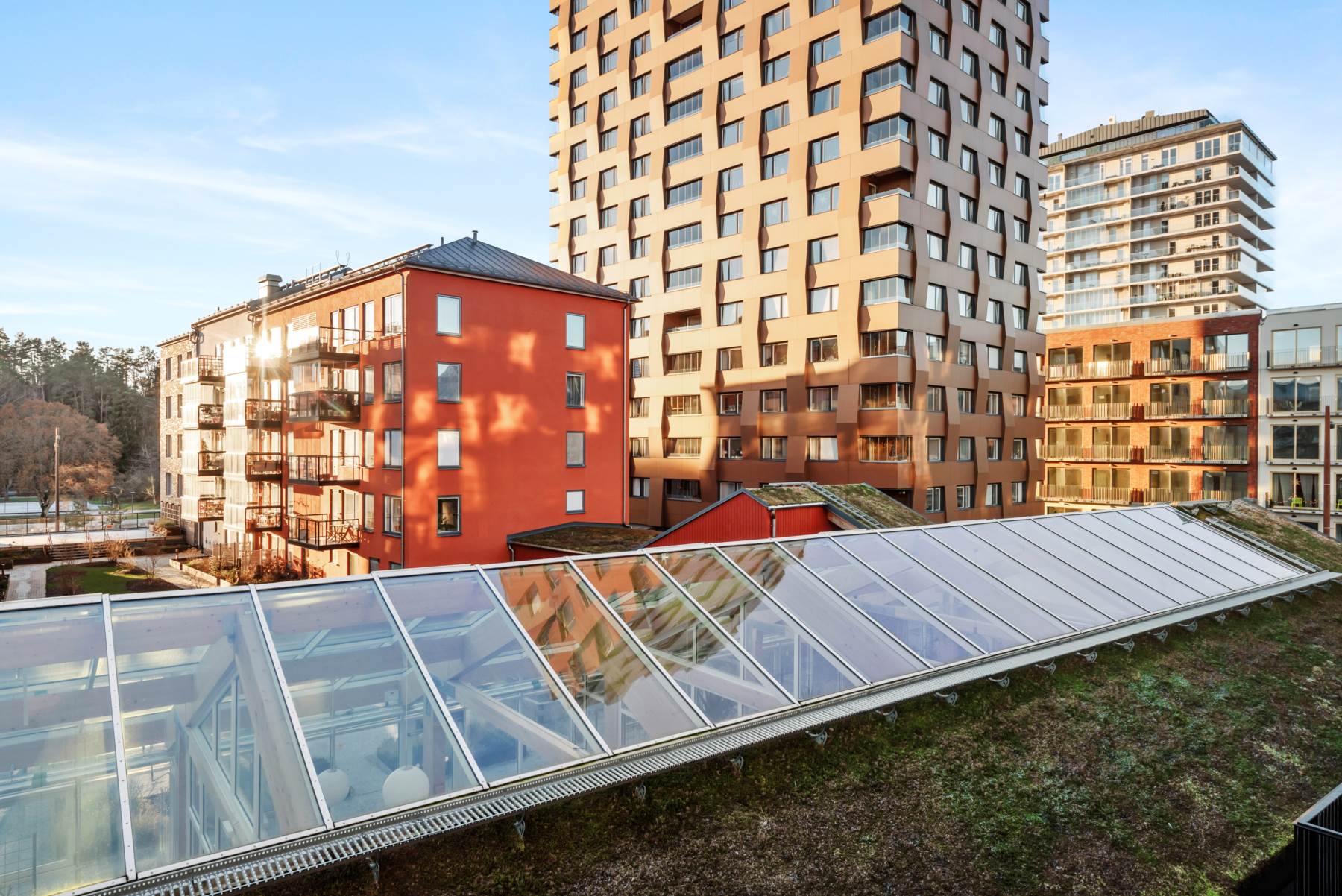 I den gemensamma vinterträdgården finns en oas där de bästa årstiderna förlängs – våren börjar tidigare och sommaren stannar längre. Grönskan ger en känsla av Rivieran, och sköna soffgrupper skapar en naturlig mötesplats för både planerade och spontana middagar med gamla och nyfunna vänner. Lyxen att kunna nyttja gym med bastu och relaxavdelning finns ochså.