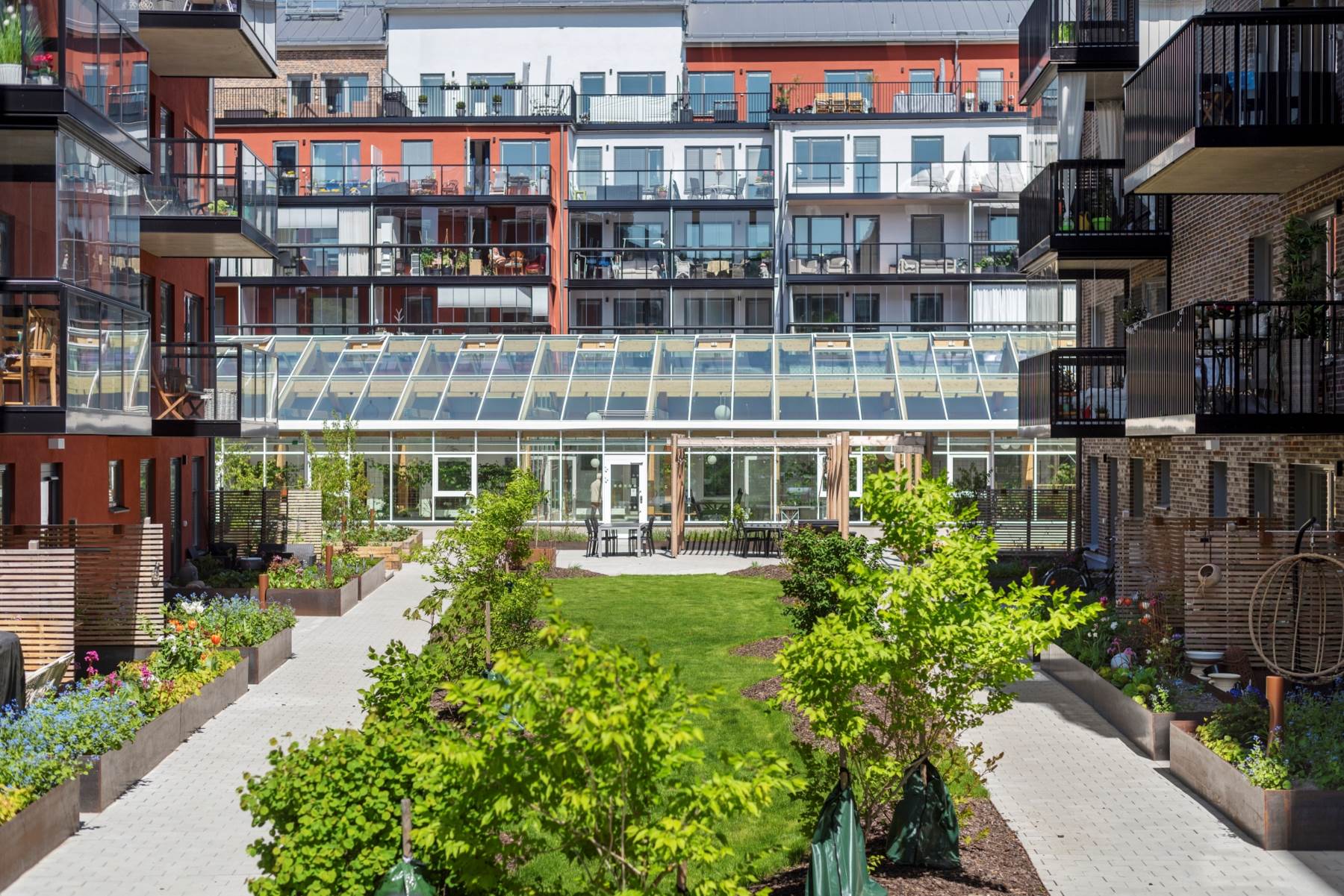 I en omgivning som prunkar av grönska och andas livskvalitet så ingår även Växthus med egen odling, gym med bastu och relaxavdelning samt gemensamt utekök med grill.