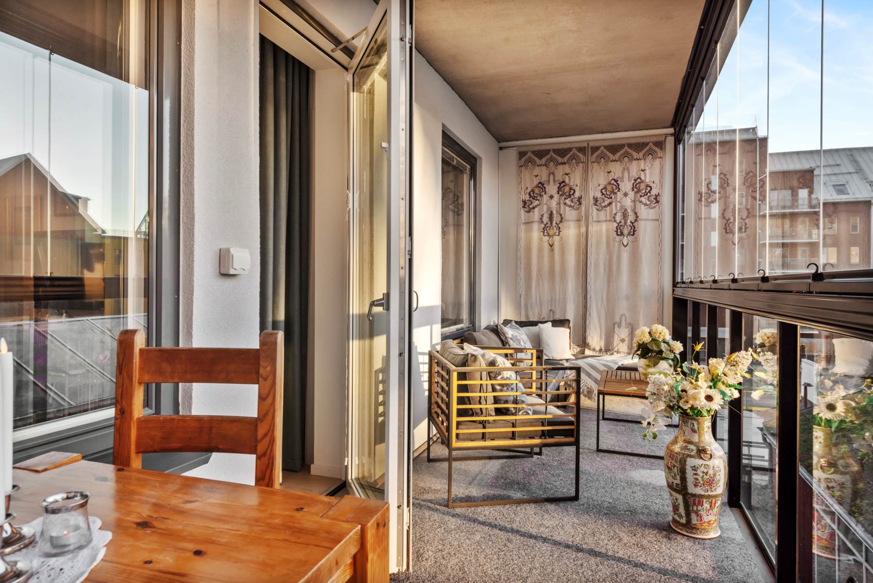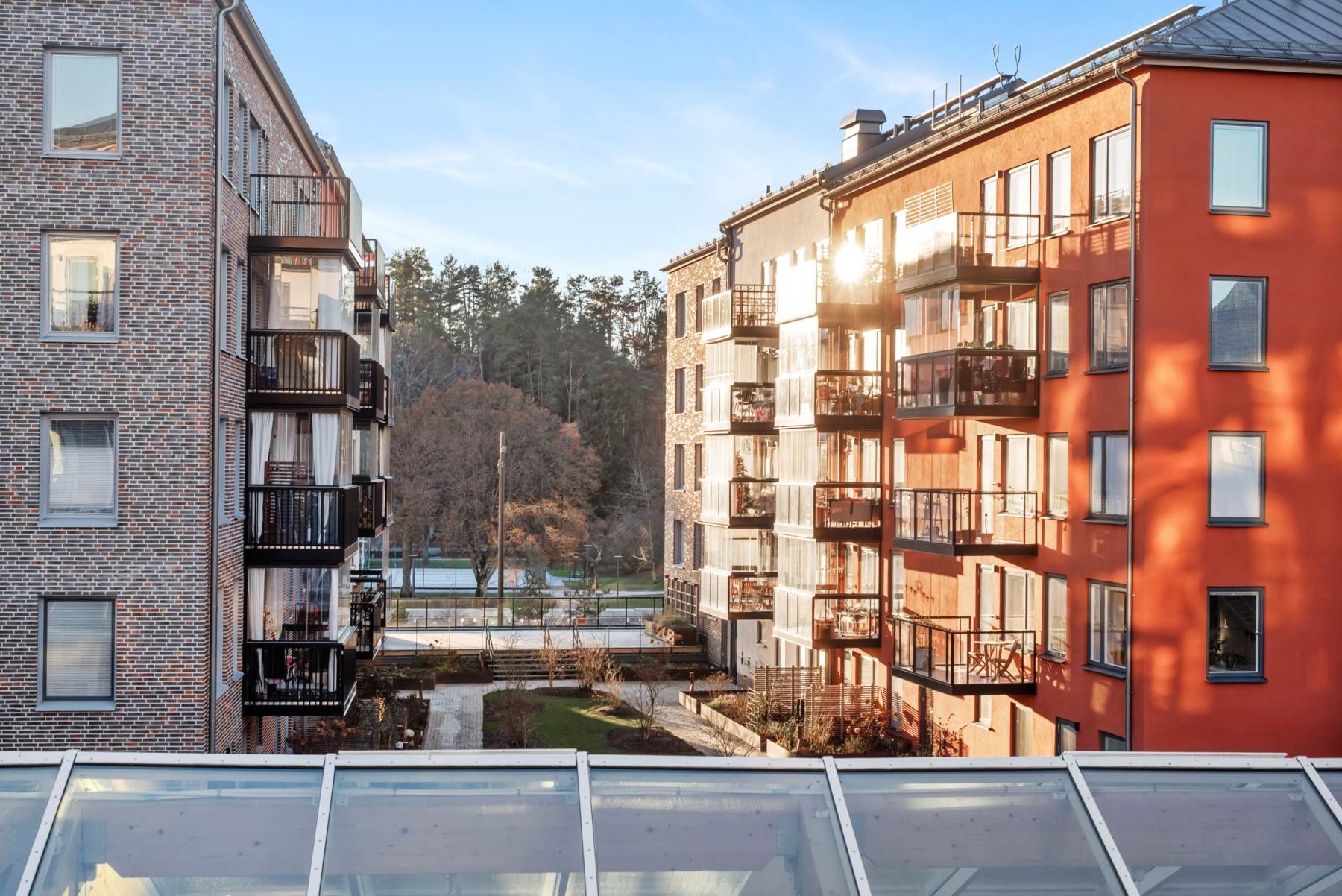 Här möts du av en genomgående planlösning som flyter naturligt mellan rummen och skapar en inbjudande atmosfär. Vardagsrummet tillsammans med den öppna planlösningen med köket blir hemmets självklara samlingspunkt. De stora fönsterpartierna släpper in ett generöst ljusflöde och från balkongen får du ett mer upphöjt och fritt läge. Balkongen blir ett extra rum att njuta av stora delar av året – perfekt för både avkoppling och sociala stunder. Framför balkongen ligger föreningens populära orangeri, vilket bidrar till en rofylld utsikt.