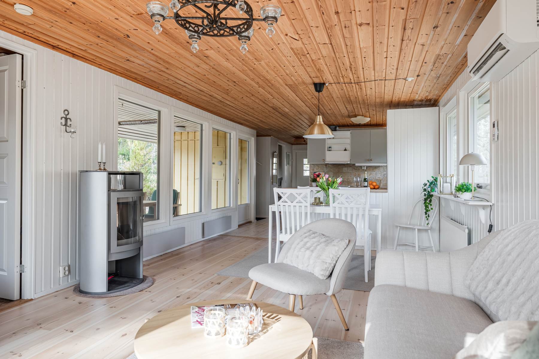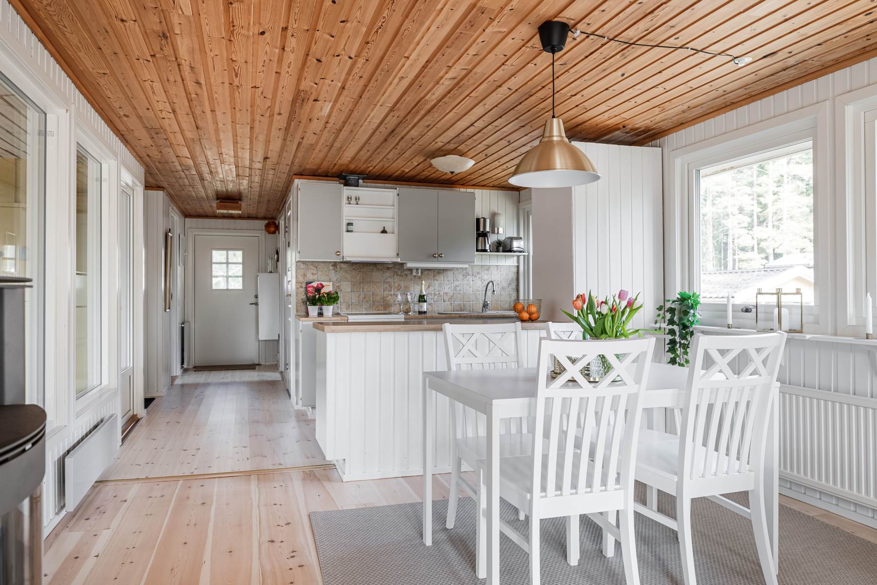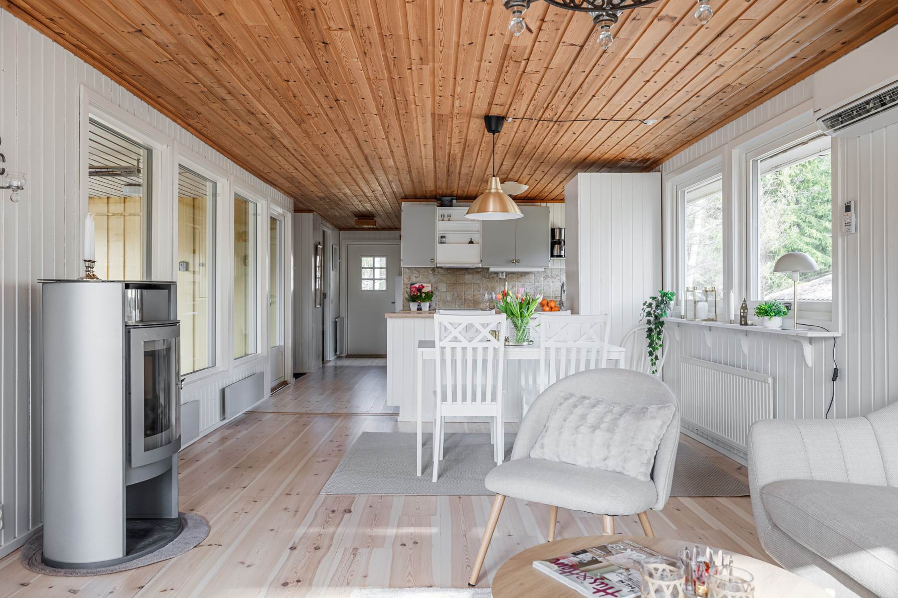 Välkomna till Hjortronvägen 26! I hjärtat av populära Kaggebo ligger denna solgula sommarstuga uppförd 1976. Stugan rymmer tre sovrum, varav det ena med plats för dubbelsäng. Storstugan och köket ligger i öppen planlösning och har nyligen målats i sobra skandinaviska färger, tillsammans med det nyinlagda furugolvet skapas en ljus och härlig plats att njuta av. Härifrån nås även altanen under tak, som ligger skyddat från insyn och med rofylld utsikt. På tomten finns en större gäststuga med plats för många bäddar, rymligt förråd samt utedass. Tomten som är en härlig mix av gräsmatta och naturtomt har gott om plats för bus och lek. På ett stenkast finns områdets fotbollsplan och på promenadavstånd nås de två havsbadplatserna i området och den samfällda pool-anläggningen med områdets sommarbutik och servering.