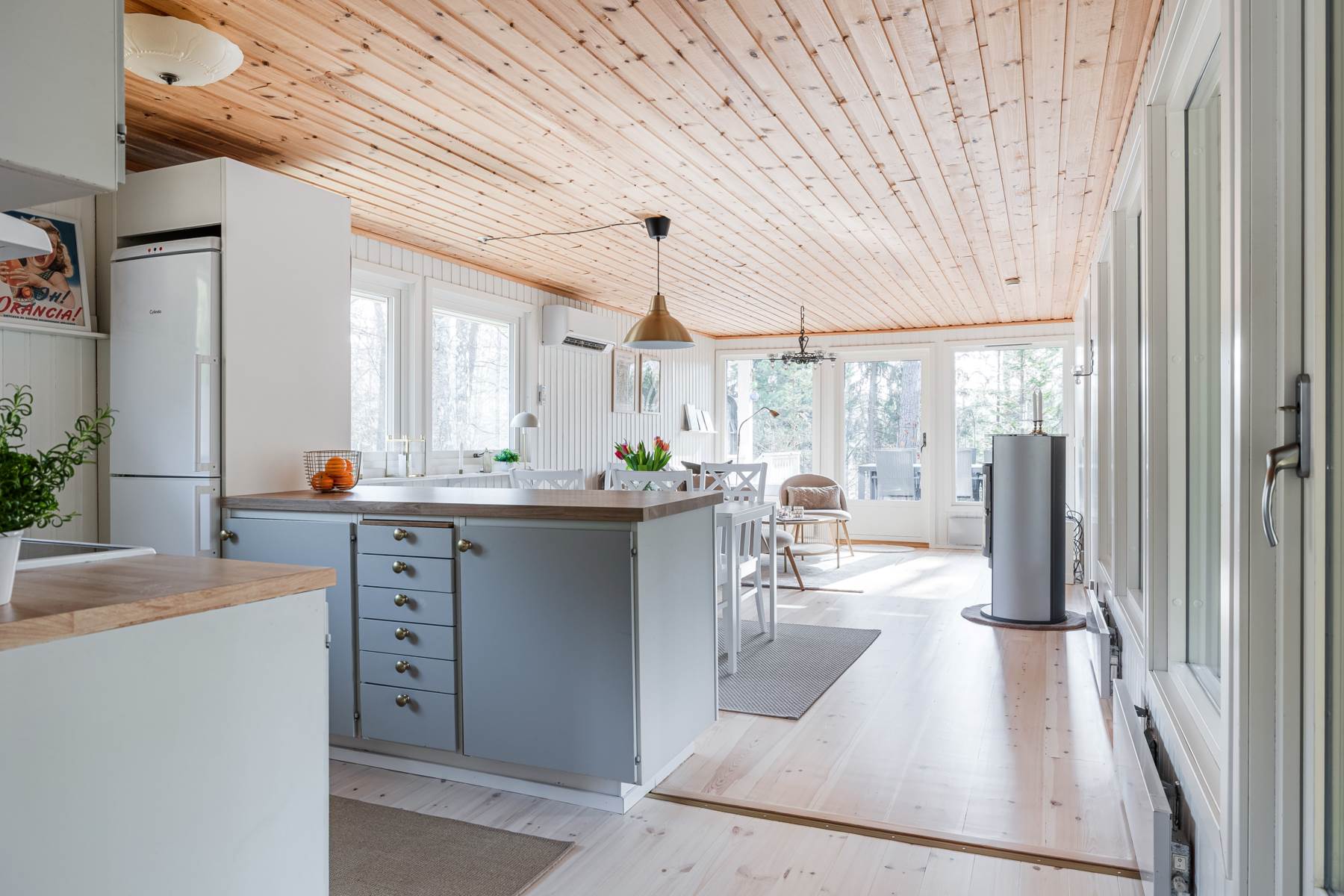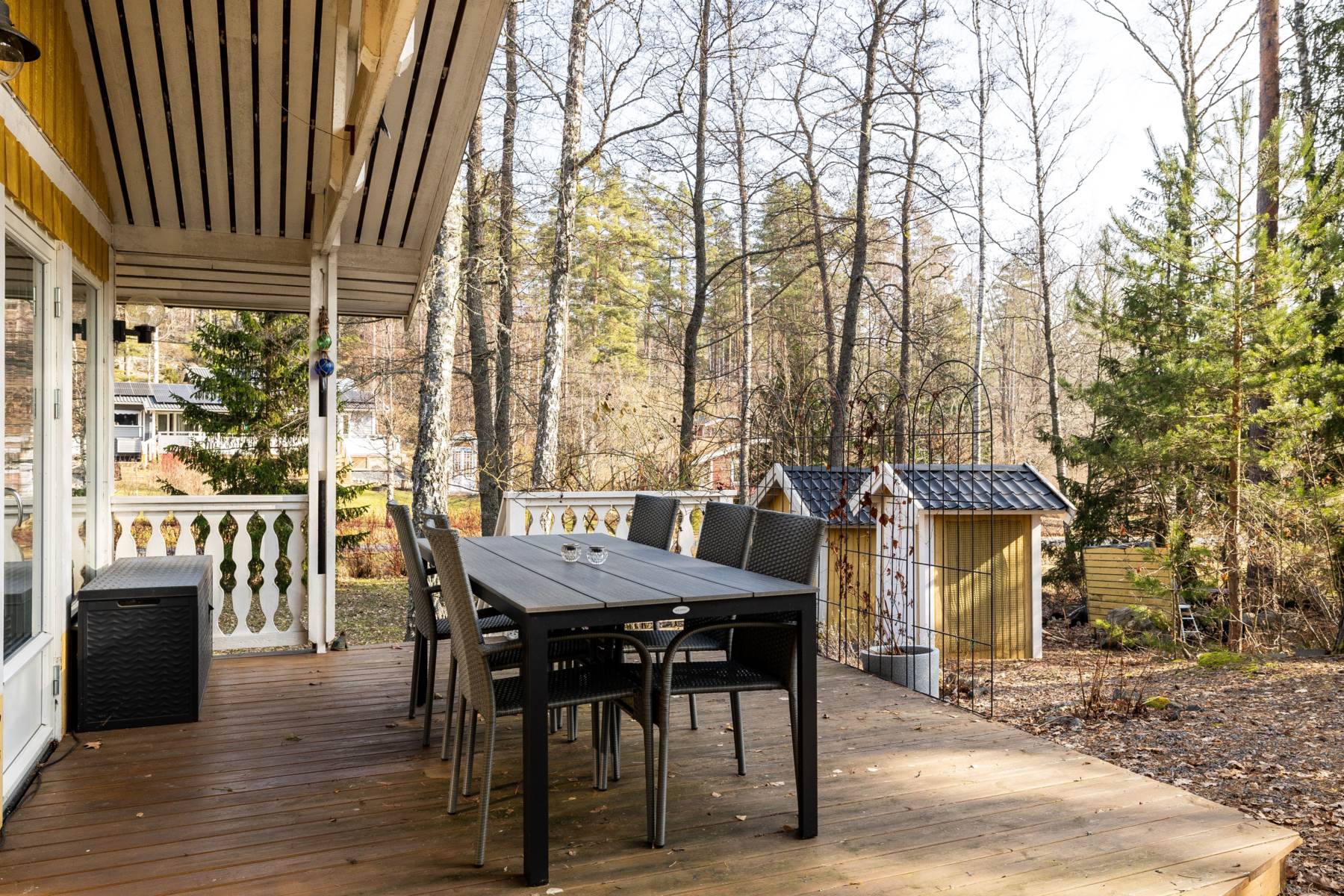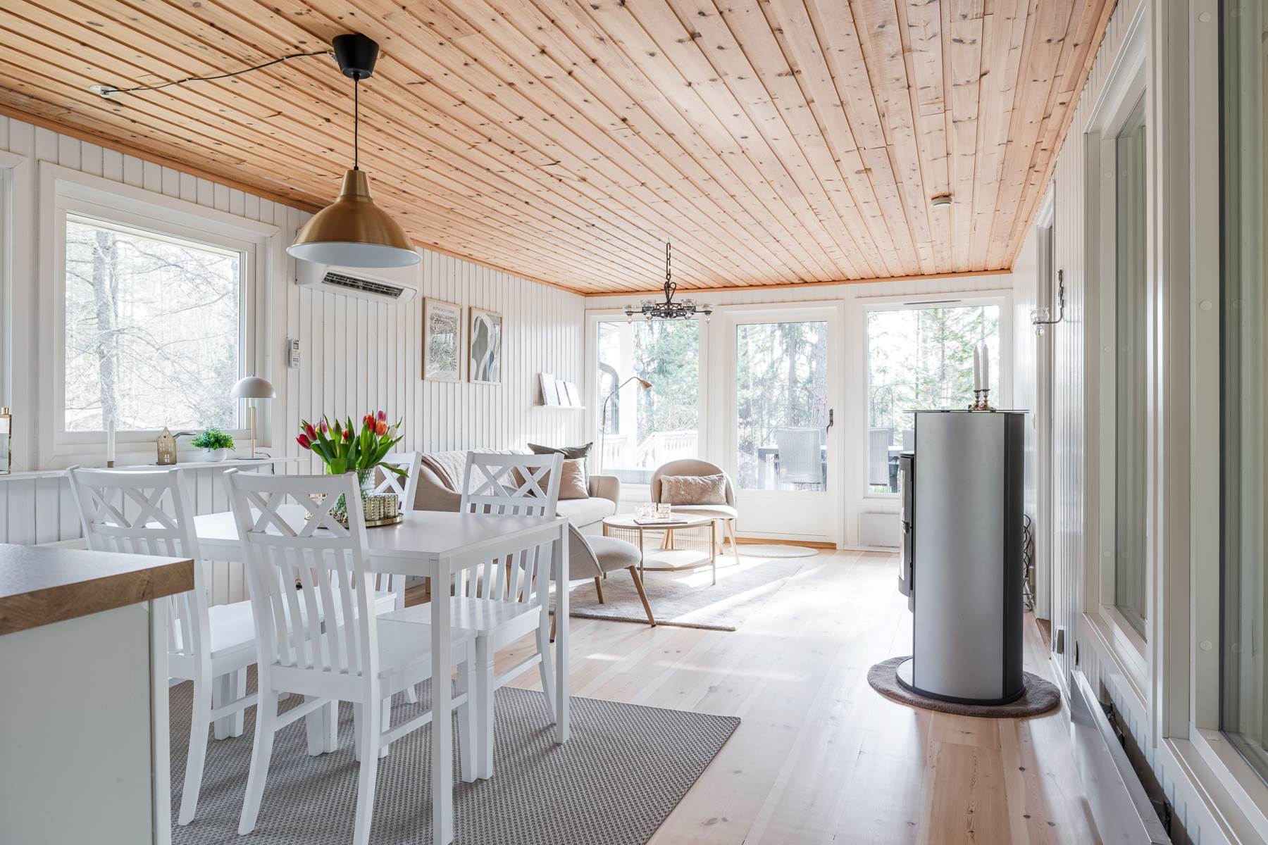 Välkomna till Hjortronvägen 26! I hjärtat av populära Kaggebo ligger denna solgula sommarstuga uppförd 1976. Stugan rymmer tre sovrum, varav det ena med plats för dubbelsäng. Storstugan och köket ligger i öppen planlösning och har nyligen målats i sobra skandinaviska färger, tillsammans med det nyinlagda furugolvet skapas en ljus och härlig plats att njuta av. Härifrån nås även altanen under tak, som ligger skyddat från insyn och med rofylld utsikt. På tomten finns en större gäststuga med plats för många bäddar, rymligt förråd samt utedass. Tomten som är en härlig mix av gräsmatta och naturtomt har gott om plats för bus och lek. På ett stenkast finns områdets fotbollsplan och på promenadavstånd nås de två havsbadplatserna i området och den samfällda pool-anläggningen med områdets sommarbutik och servering.