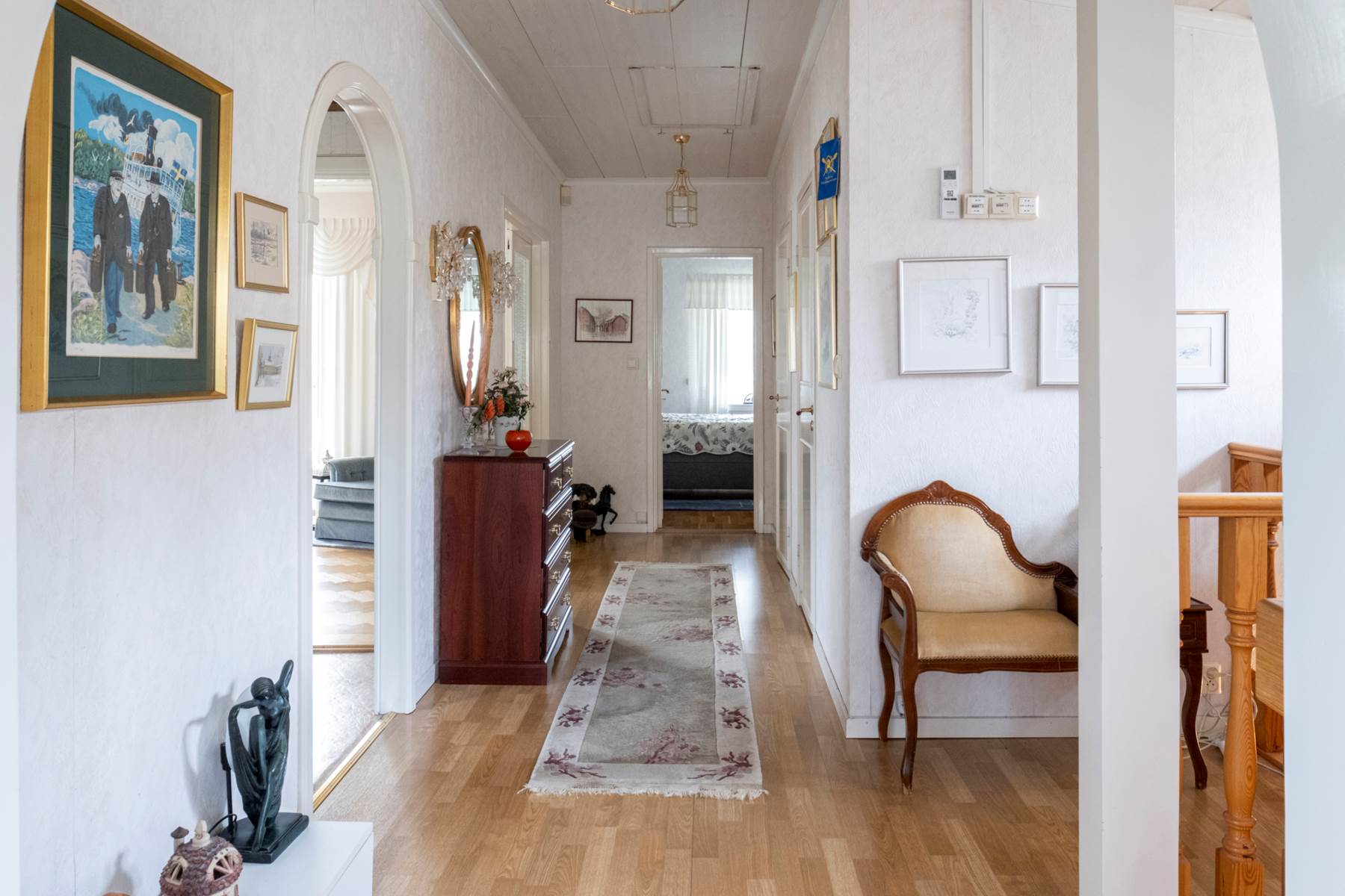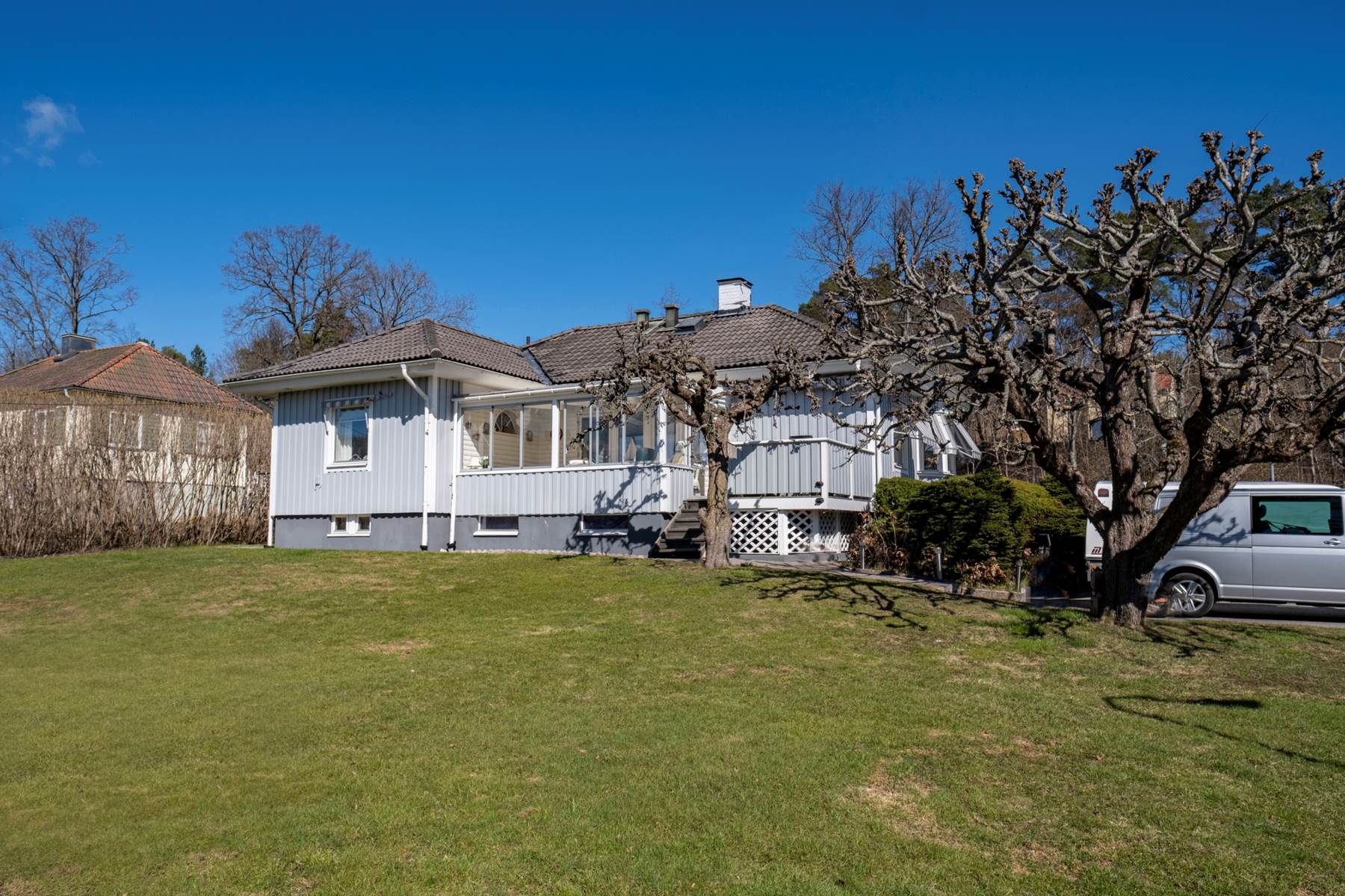 Varmt välkommen till denna familjevilla där nuvarande ägare har bott i över 50 år, ett tecken på att man verkligen har trivts. Huset har en trivsam atmosfär och köket med sin stora matplats blir en naturlig samlingsplats som inbjuder till middagar med familjen eller goda vänner. Stort vardagsrum i vinkel där en öppen spis ger extra charm och karaktär och här finns även utgången till det inglasade uterummet där man njuter av ett härligt solläge. Källarvåningen erbjuder både sovrum om man så önskar samt fina förvaringsytor. Här finns även bastu samt direkt access till garage. För den bilintresserade finns även ett dubbelgarage samt uppställningsplats för flertalet bilar eller t ex husbil eller båt. Uppvuxen trädgårdstomt med flertalet fruktträd och fin gräsmatta. Här bor man i ett härligt hörnläge med närhet till kommunikationer, båtmarina samt Näsby Park Centrum. Som sagt, ägarna har bott här länge men nu är det dags för en ny familj att sätta sin prägel på huset och trivas lika bra, välkommen hem.