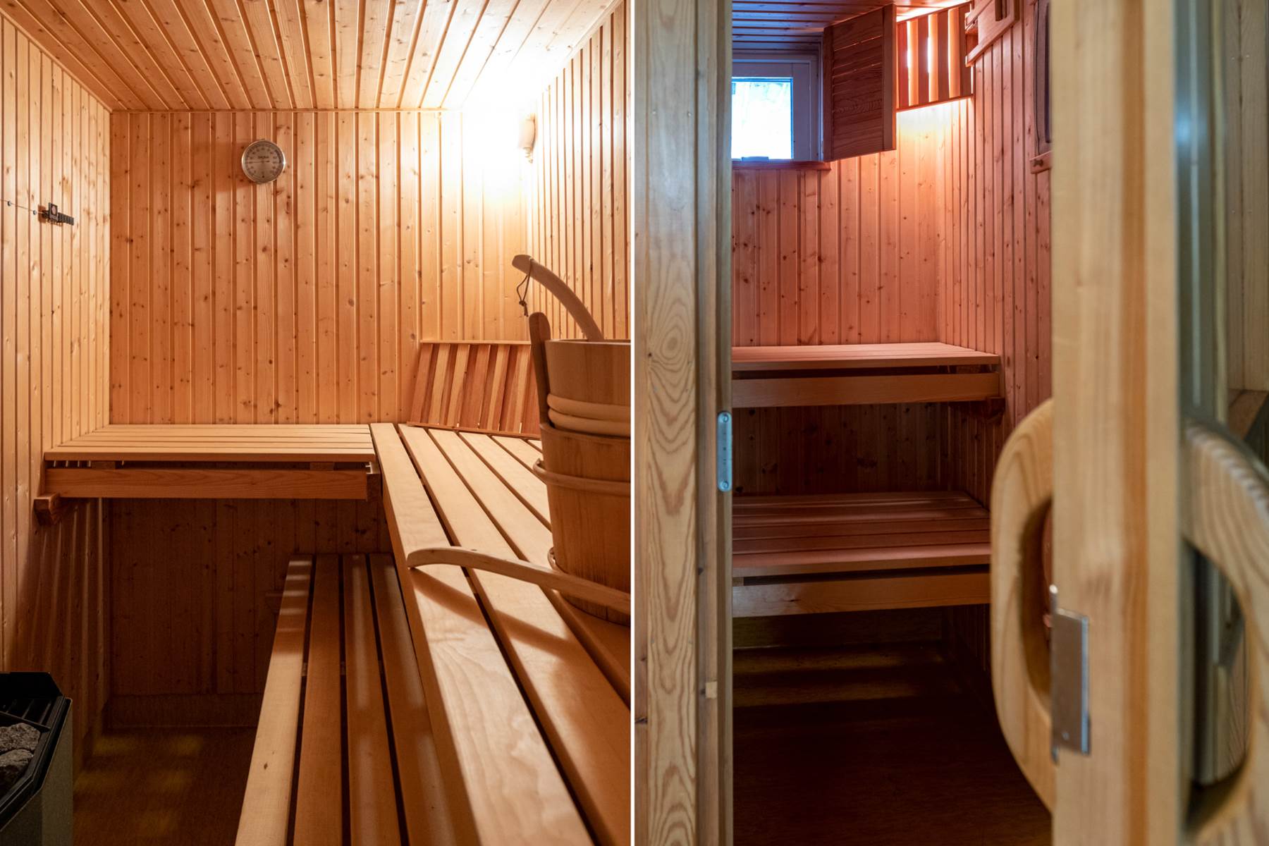 Rymlig fräsch bastu med fönster.