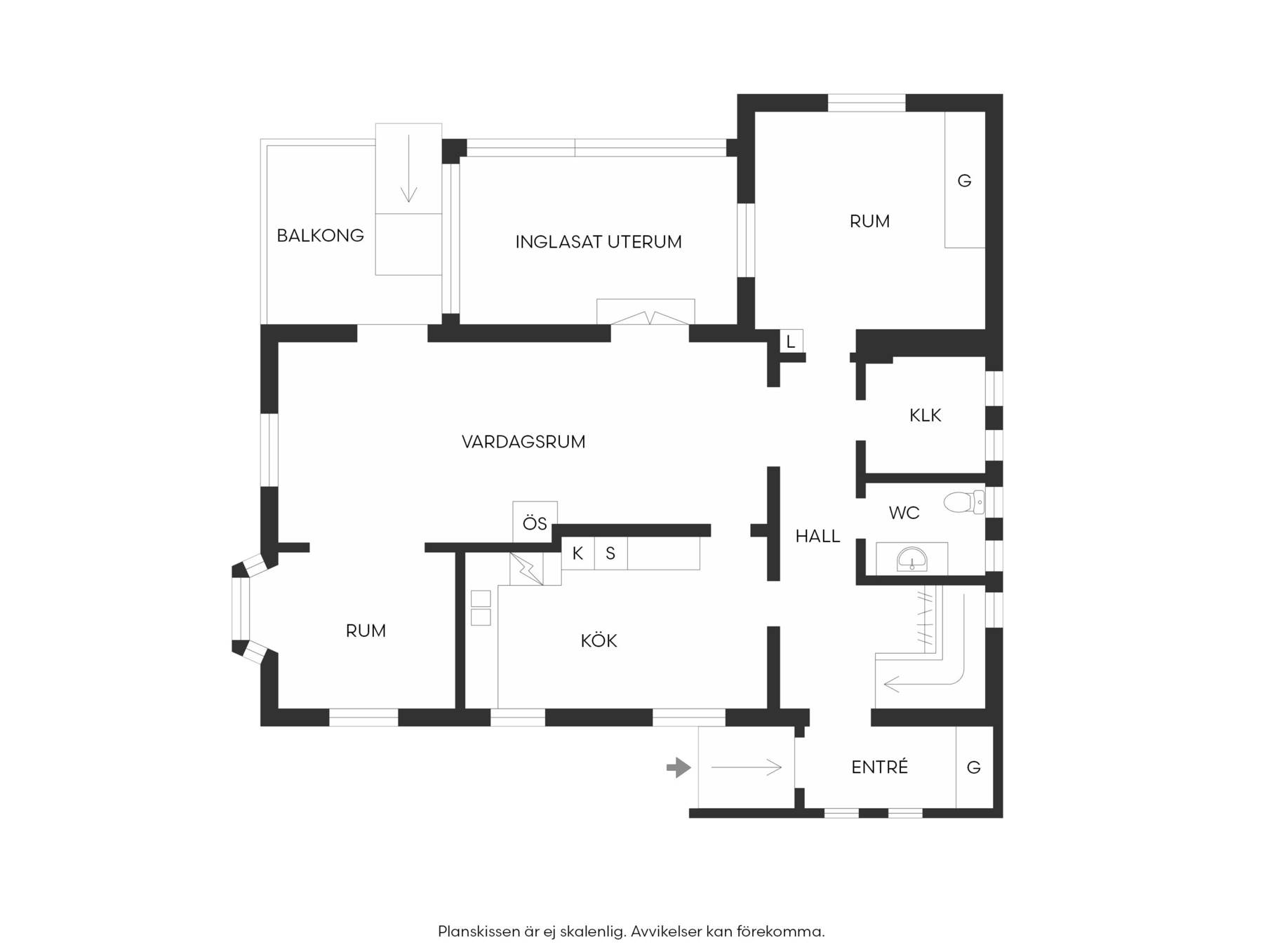 I direkt anslutning till det inglasade uterummet finns en balkong där man njuter av solen. Här finns markis och genom skjutdörr i glas når man det inglasade uterummet.