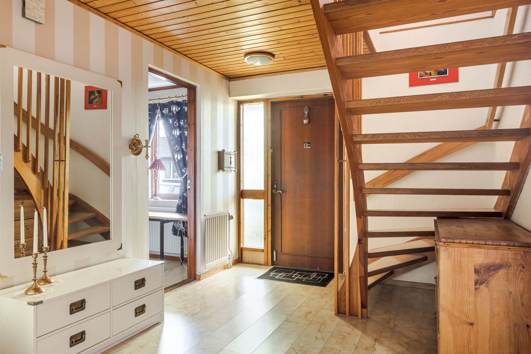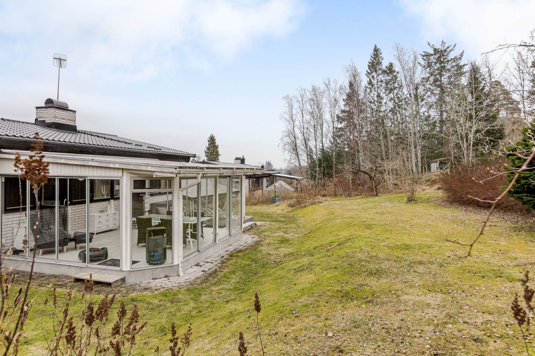 På en lugn återvändsgata i pendlingsvänliga Nygård ligger denna suterrängvilla uppförd 1974. Villan är på 258 kvm (162 + 96) och har gott om plats för den stora familjen eller för er som önskar utrymmen för hobby och förvaring i hemmet. Suterrängplanet erbjuder två rum som för nuvarande ägare använder som hemmakontor och tv/allrum men som med fördel går att nyttja som sovrum. Här finns förrådsutrymmen och hobbyrum med direktanslutning till garaget. Tvättstuga med torkrum, bastu, dusch och separat WC. På det övre planet finns ett stort vardagsrum med plats för både soff- och matgrupp. I anslutning till vardagsrummet finns det hemtrevliga köket, med gott om förvaring, arbetsyta och plats för större matbord, härifrån nås det vidbyggda uterummet som med fördel förlänger sommarsäsongen. På detta plan finns tre stora sovrum, samt ett duschrum. Villans trädgårdssida ligger i soligt sydvästläge. Vidbyggt villan finns ett rymligt extra-utrymme som tidigare nyttjats som frisörsalong, i denna del av byggnaden finns även skyddsrum. Perfekt för er som vill ha ett hemma-kontor, behöver plats för hobby eller mycket förvaring. Ett tillfälle för er som söker ett rymligt boende att interiört forma till ert.