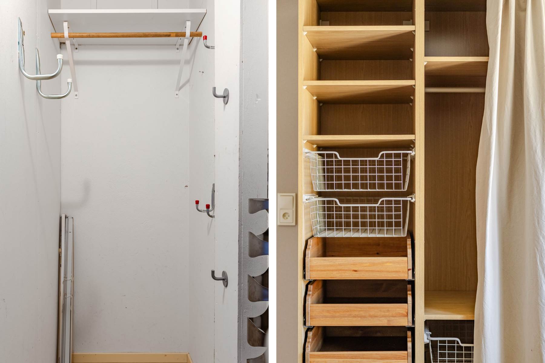 Bostaden är genomgående inredd i ljusa färger och smart planerad med gott om plats för förvaring och huset har såklart hiss för extra bekvämlighet.