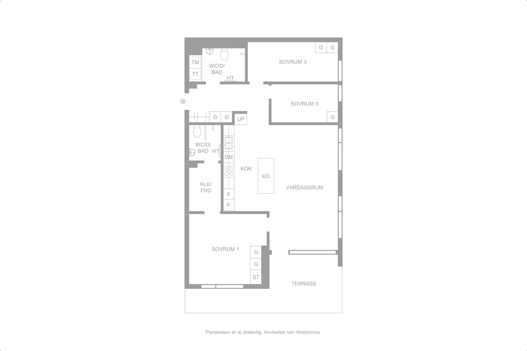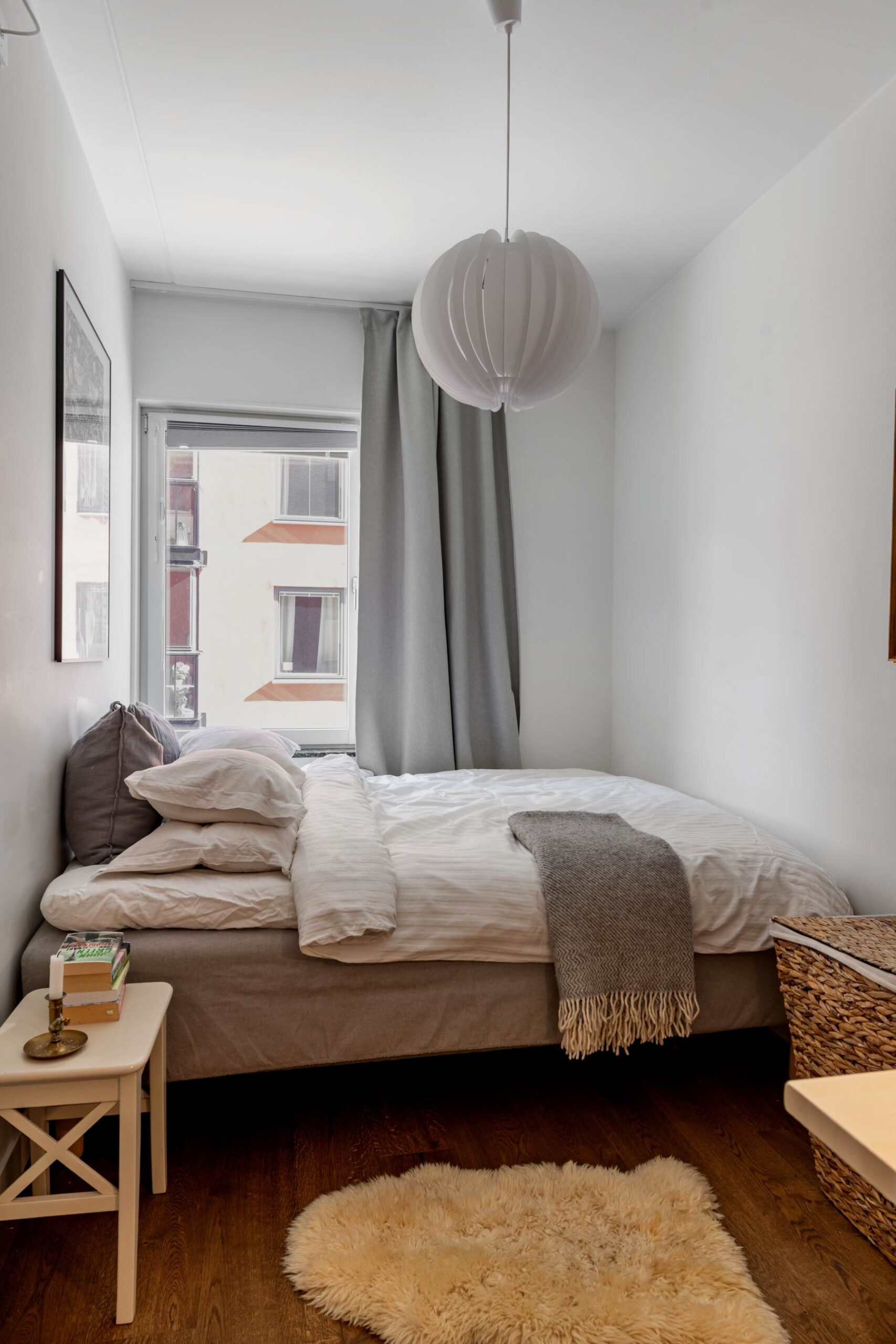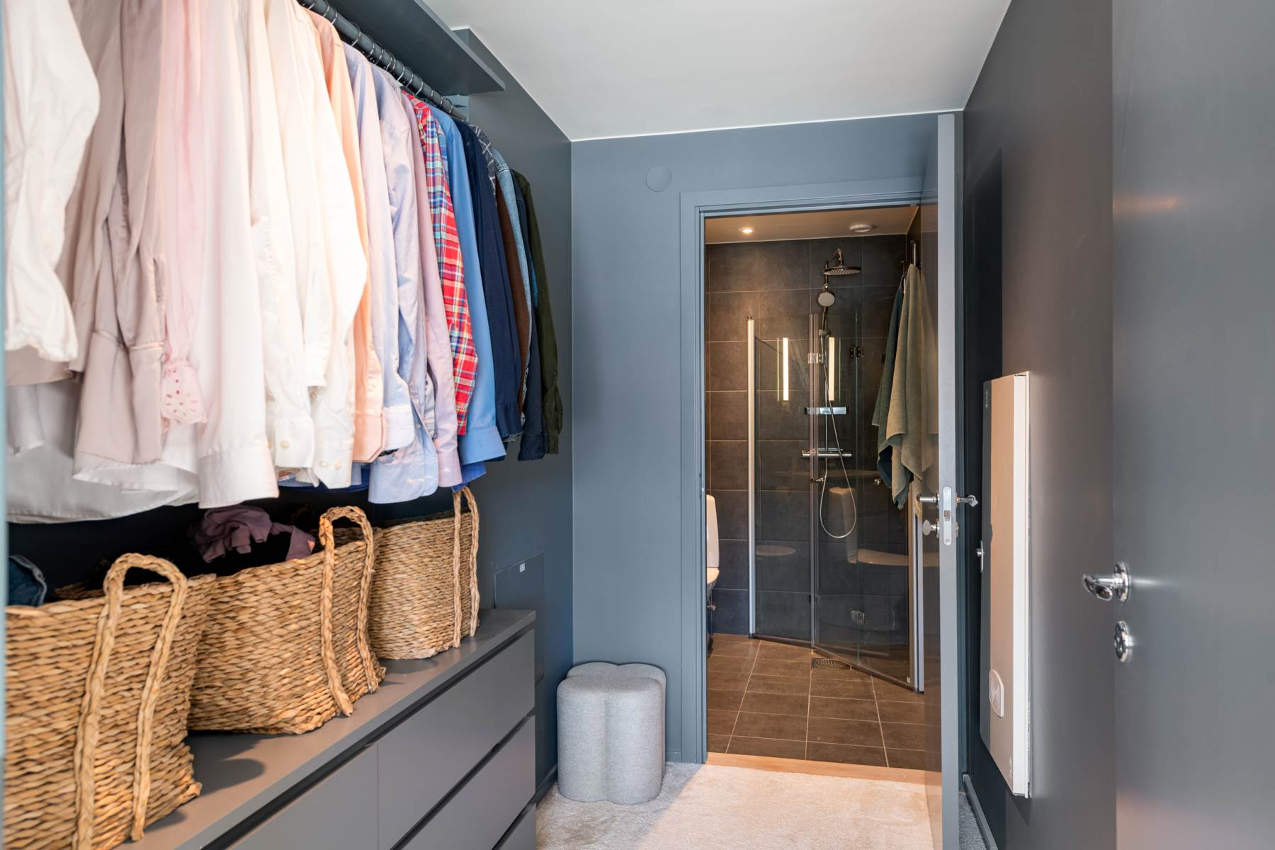 Bostaden rymmer tre sovrum. De två mindre sovrummen är stilrent utformade i ljusa toner. Master bedroom är en privat svit med dova färger, heltäckningsmatta, walk-in-closet och ett eget elegant duschrum.