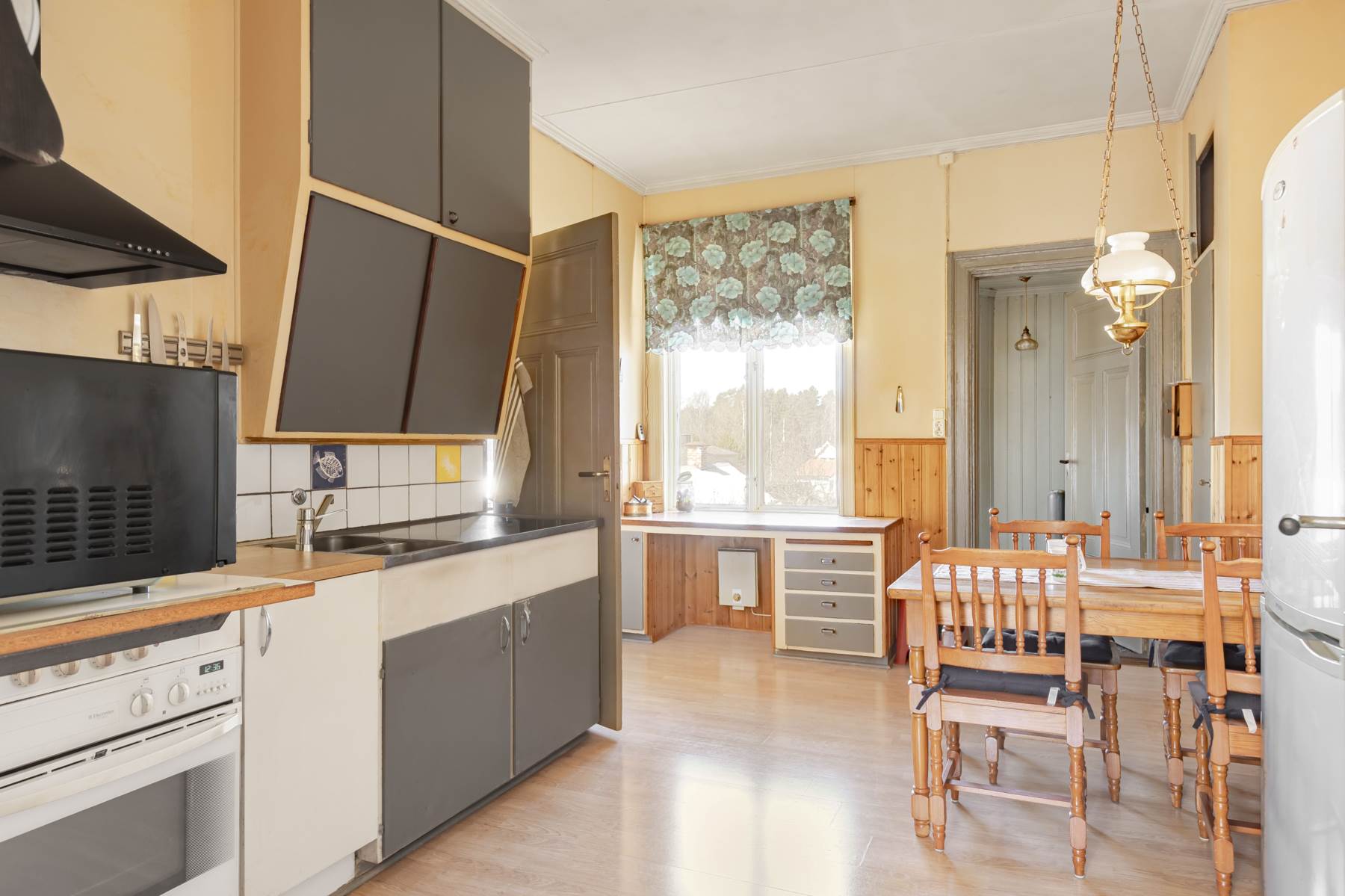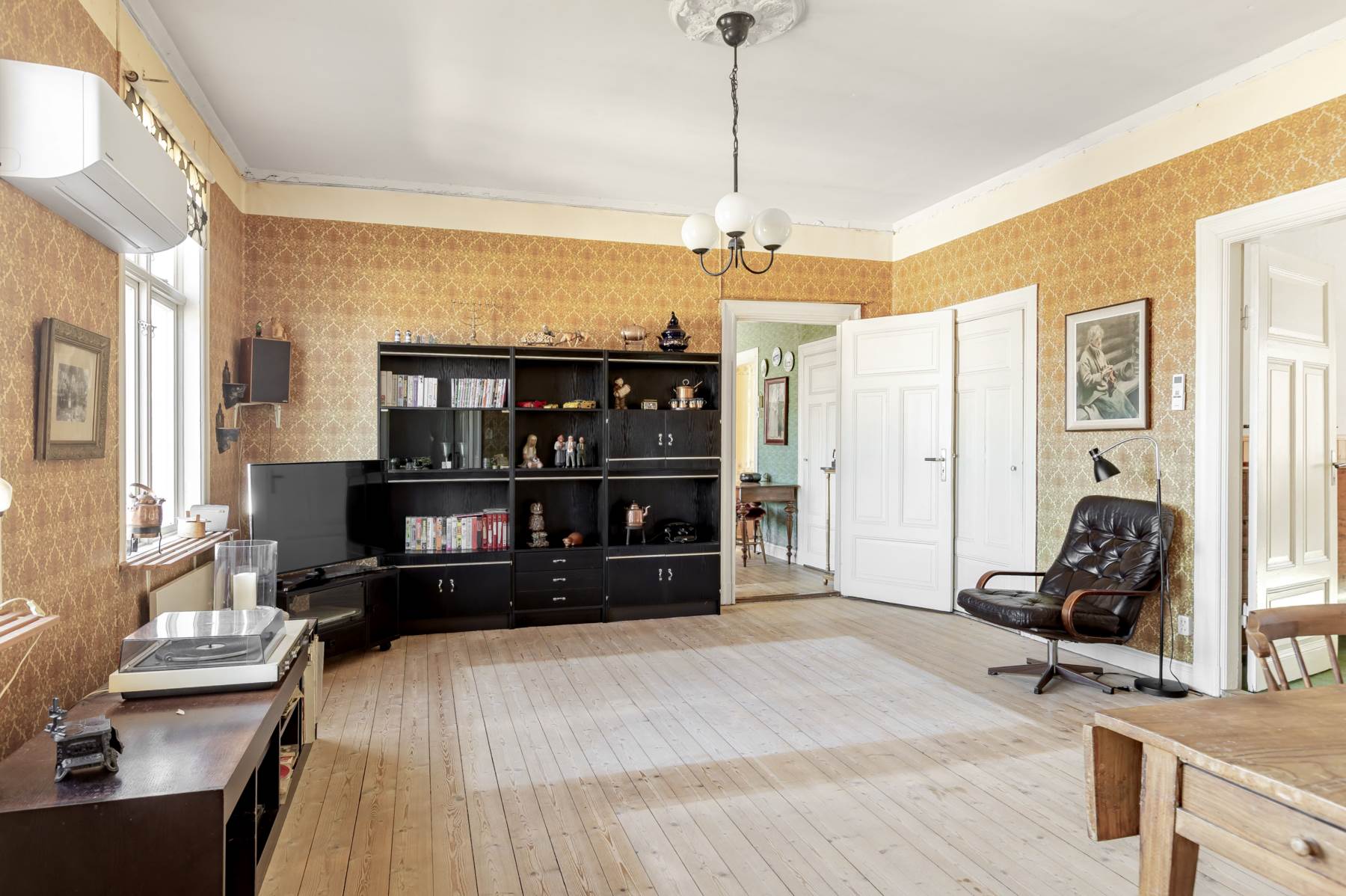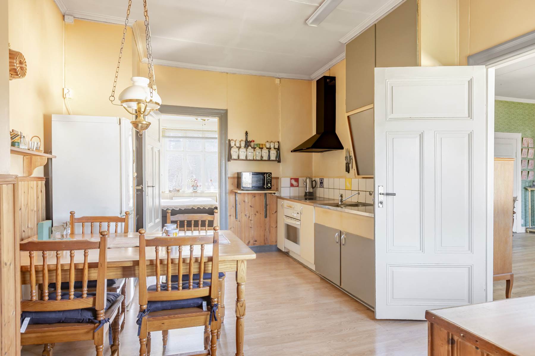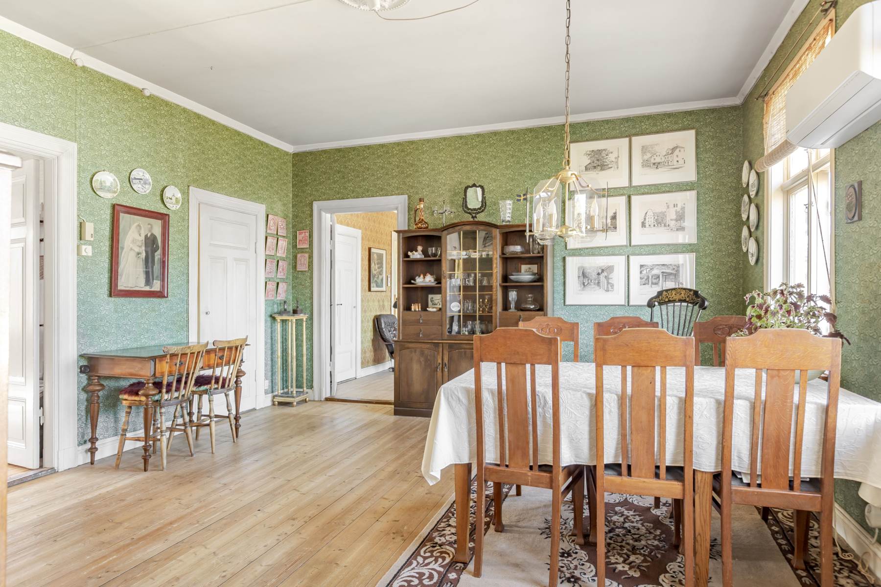 Fastigheten präglas av vackra tidstypiska detaljer från sekelskiftet – högt i tak, stuckaturer, gedigna trägolv, höga golvlister samt vackra innerdörrar med breda dörrposter som ger hemmet en genuin och exklusiv karaktär, till detta finns kakelugnar i nästan varje rum. Du möts av en känsla av rymd och ljus, med stora sällskapsytor som kan anpassas efter behov, även vinden är inredningsbar och har redan idag två befintliga sovrum.