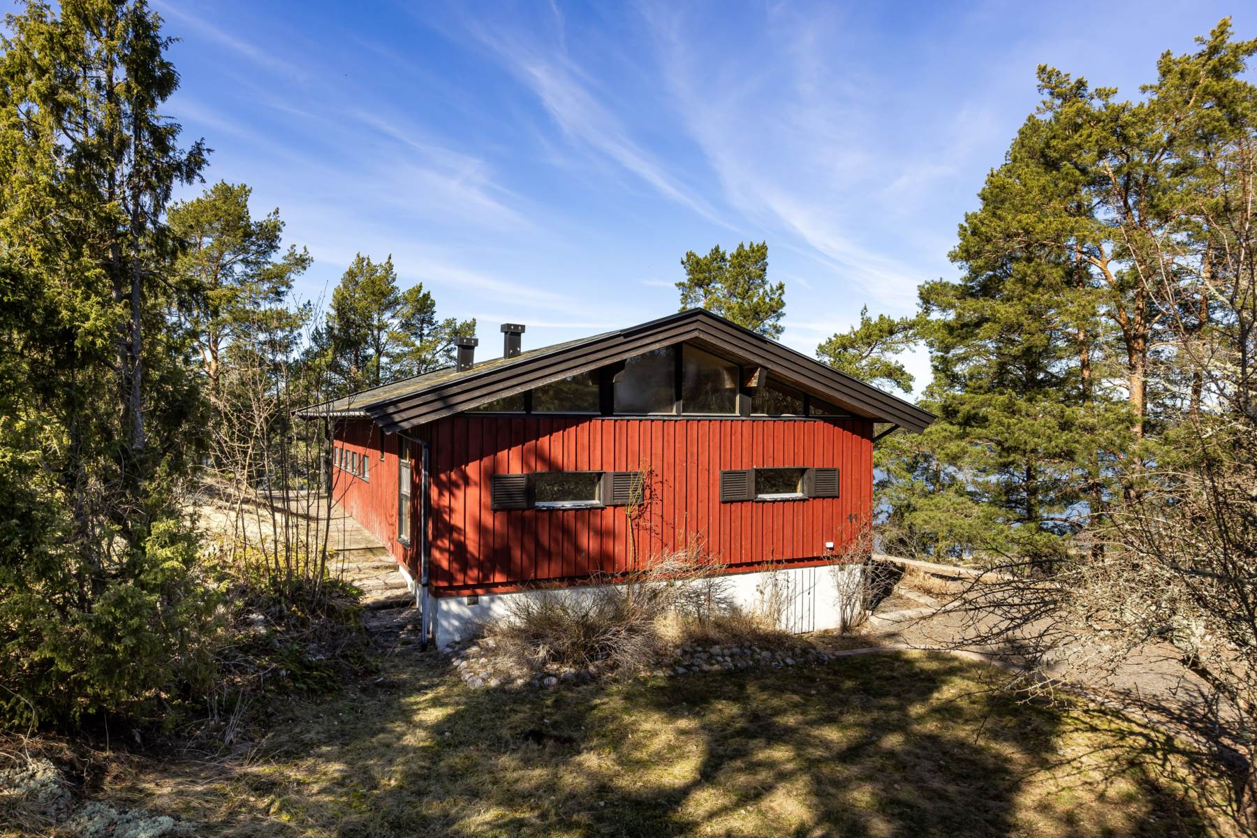 På ett högt placerat läge hittar ni detta rymliga fritidshus med fin havsutsikt mot Årsviken.