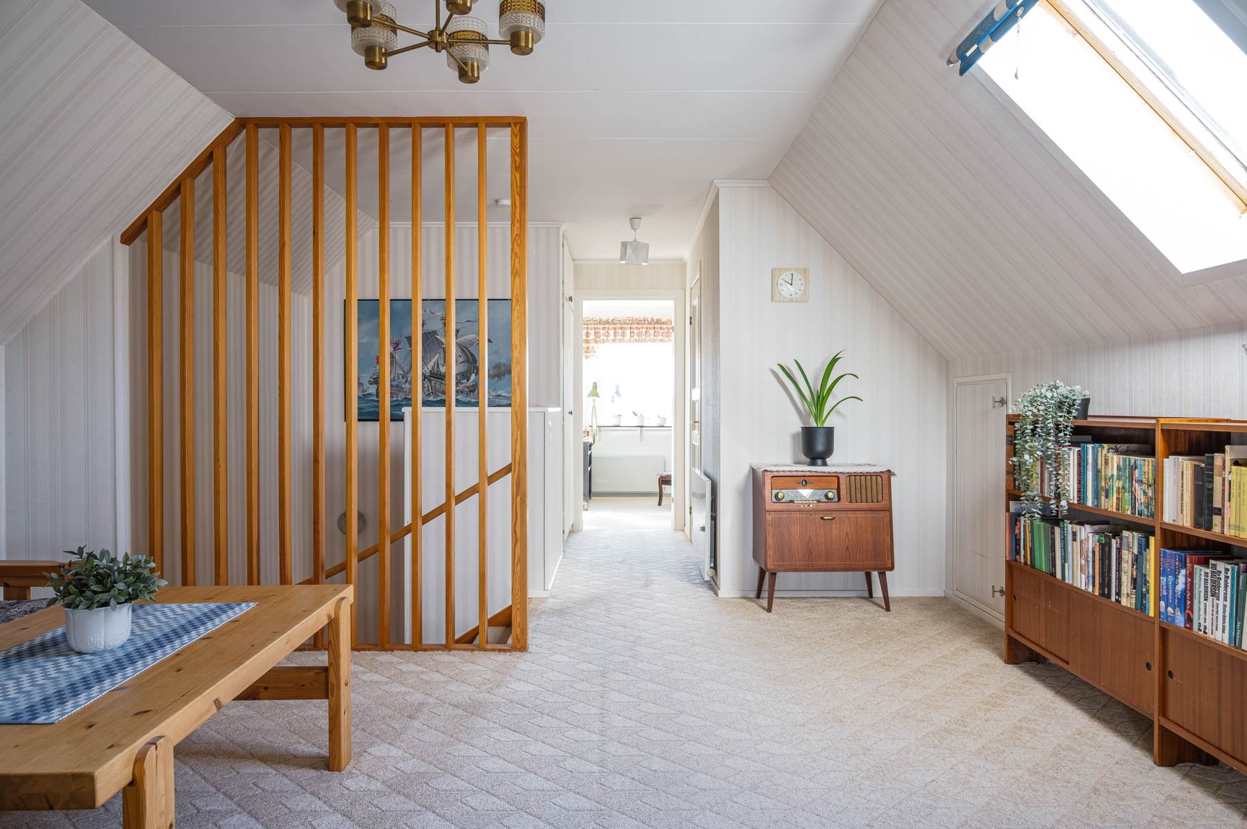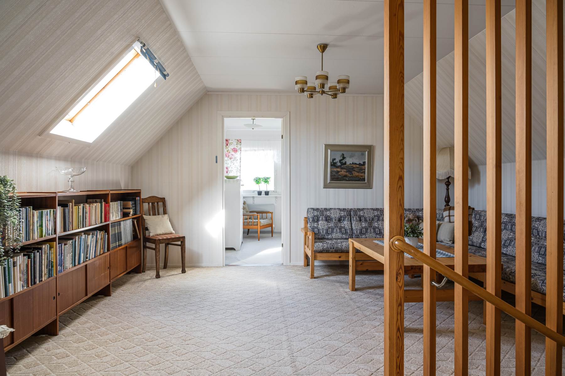 Entréplanet erbjuder en praktisk och funktionell planlösning med kök, vardagsrum, tvättstuga, badrum samt två sovrum – perfekt för familjelivets vardag. En trappa upp möts du av ett mysigt allrum, ytterligare två sovrum och ett badrum, vilket ger gott om plats för både barn, gäster eller hemmakontor.