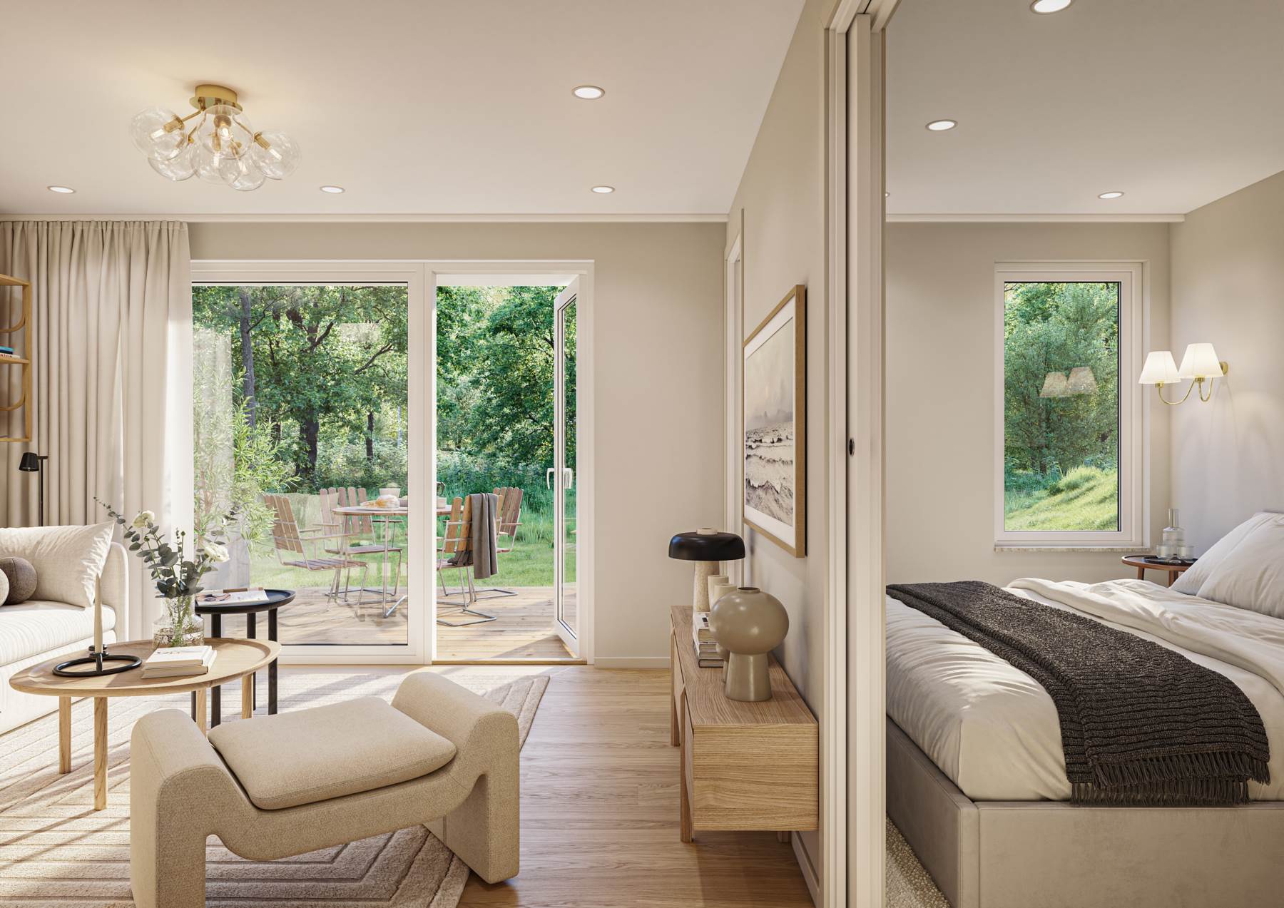 Materialvalen har samma premiumkänsla som i parhusen – naturmaterial, kvalitativa snickerier och omsorg om detaljer. Resultatet är ett litet hem med stor karaktär.