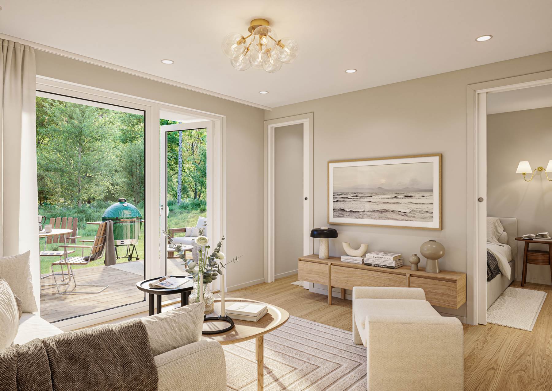 Husen placeras med tydliga tomtgränser och generösa privata uteplatser. Området öppnar sig mot den intilliggande naturen – alla bostäder vetter mot skogspartiet vilket skapar ett avskilt och lugnt läge med grönska som naturlig avgränsning. Varje uteplats är planerad för att fånga kvällssolen, vilket skapar en privat och trivsam atmosfär för umgänge och avkoppling.