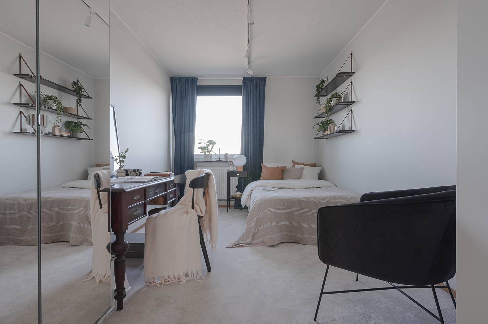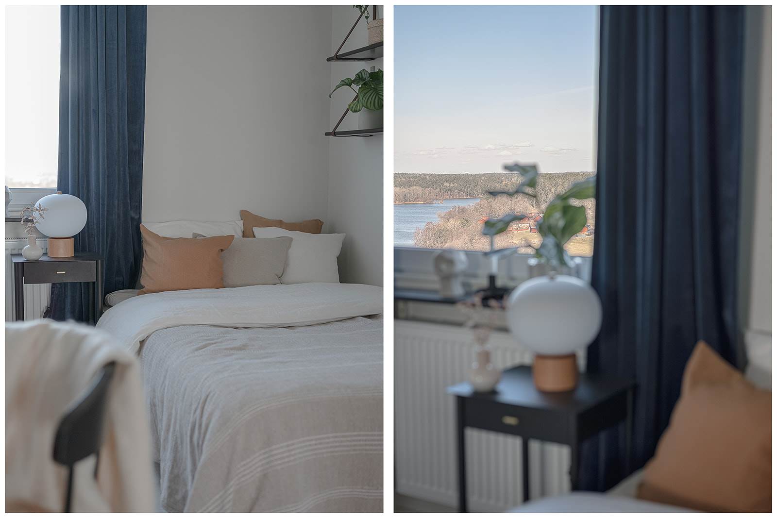 Ett ljust och harmoniskt rum med vattenutsikt. Perfekt som sovrum, arbetsrum eller gästrum, med plats för säng, skrivbord och förvaring samt en praktisk garderob.