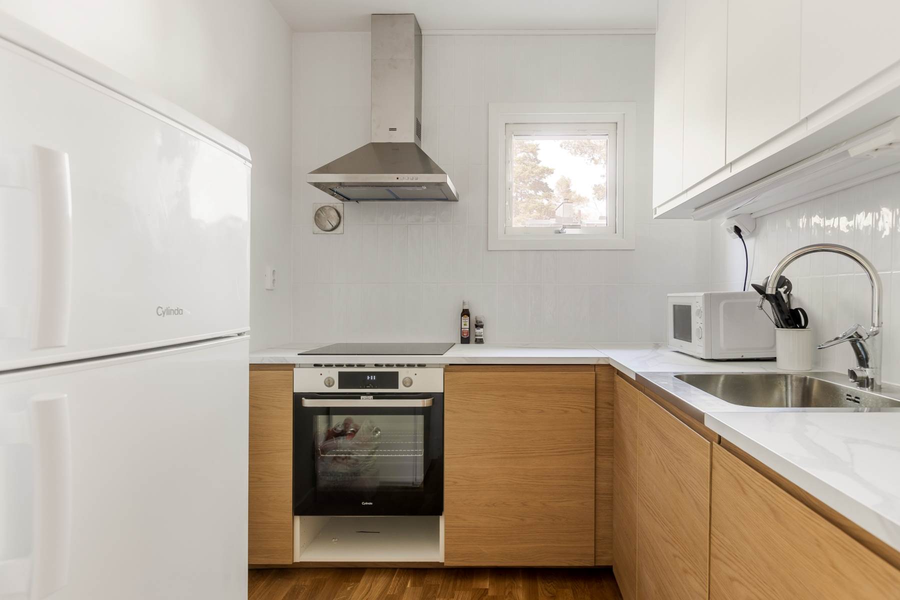 Det stora vardagsrummet bjuder in till både umgänge och avkoppling, medan det mindre sovrummet är perfekt dimensionerat för en bekväm säng och förvaring utan att kännas trångt. En bostad som verkligen kombinerar funktion, stil och trivsel.