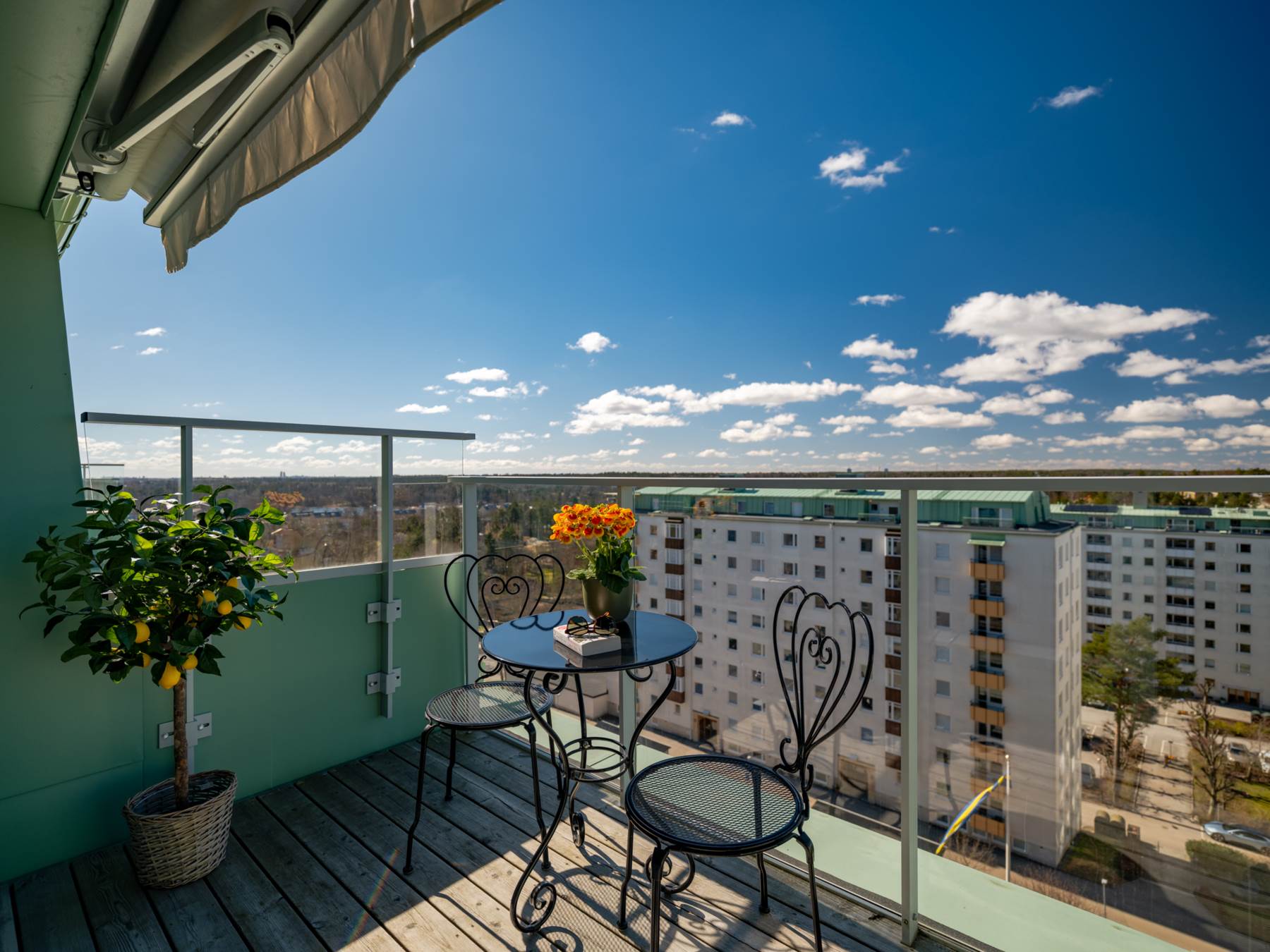 Etagevåning med fantastiskt solläge, dubbla vardagsrum och två badrum!