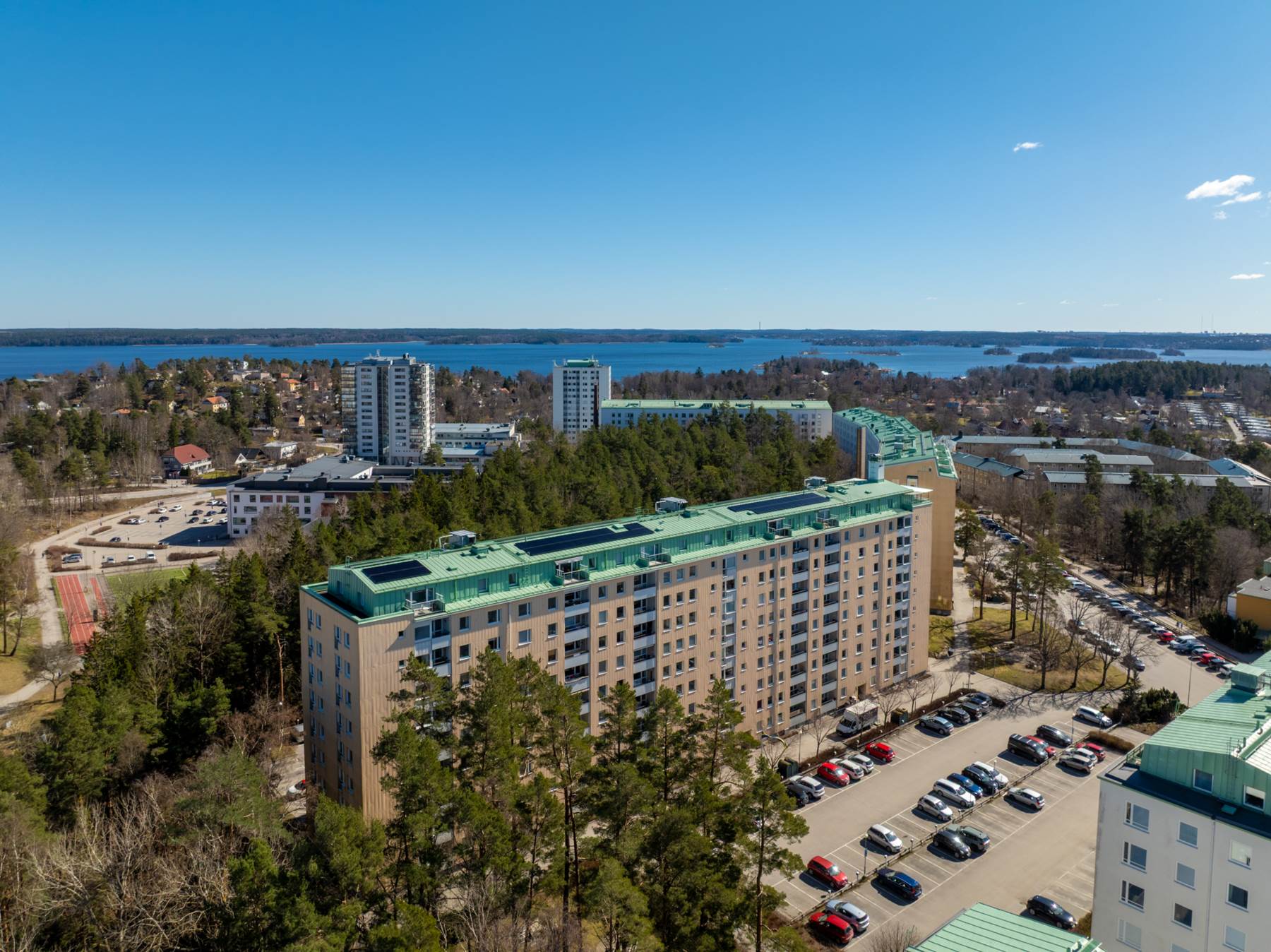 Näsby Park är en attraktiv del av Täby Kommun med närhet till såväl naturområden som central bebyggelse. Här hittar man allt från nyrenoverat sekelskifte till nyproducerat. Utmärkande för området är dess närhet till vatten, vilket möjliggör att ta sig med båt till såväl stan som skärgården. Dessutom utgörs kustlinjen av fina promenadstråk, sandstrand, badbryggor och båtplatser. Under vinterhalvåret är de oändliga skridskostråken mycket populära. Näsby Slott är vackert beläget vid Näsbyviken. Tidigare låg här Sjökrigsskolan men idag används slottet som konferens- och festlokal och de omgivande byggnaderna hyrs ut. För den träningsintresserade finns Sats i Näsby Park Centrum. Dessutom har Friskis & Svettis en fin anläggning med anslutning till Näsby Slott. Roslagsbanan har en av sina ändhållplatser i Näsby Park och med tåget nås stan på 20 minuter. Det finns även bra bussförbindelser till tunnelbana i Danderyd i rusningstid och nattetid. På några minuters bilavstånd ligger Djursholms golfbana och Altorps motionsspår. Du tar dig snabbt till Täby Centrum med buss, bil, cykel eller promenad. Det finns flera bra förskolor och skolor med olika inriktningar och pedagogik.
