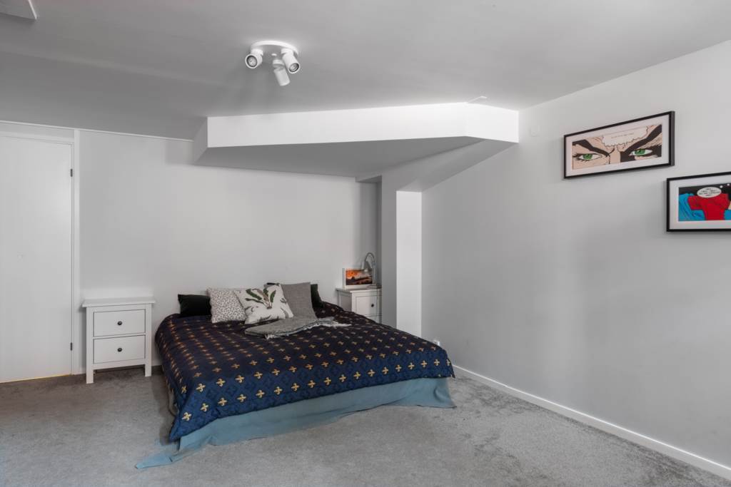 Detta rum går utmärkt att använda för tonårshäng. Alternativt gästrum. Plats för en stor säng och skrivbord. Heltäckningsmatta i grå och ljus kulör klär väggarna.