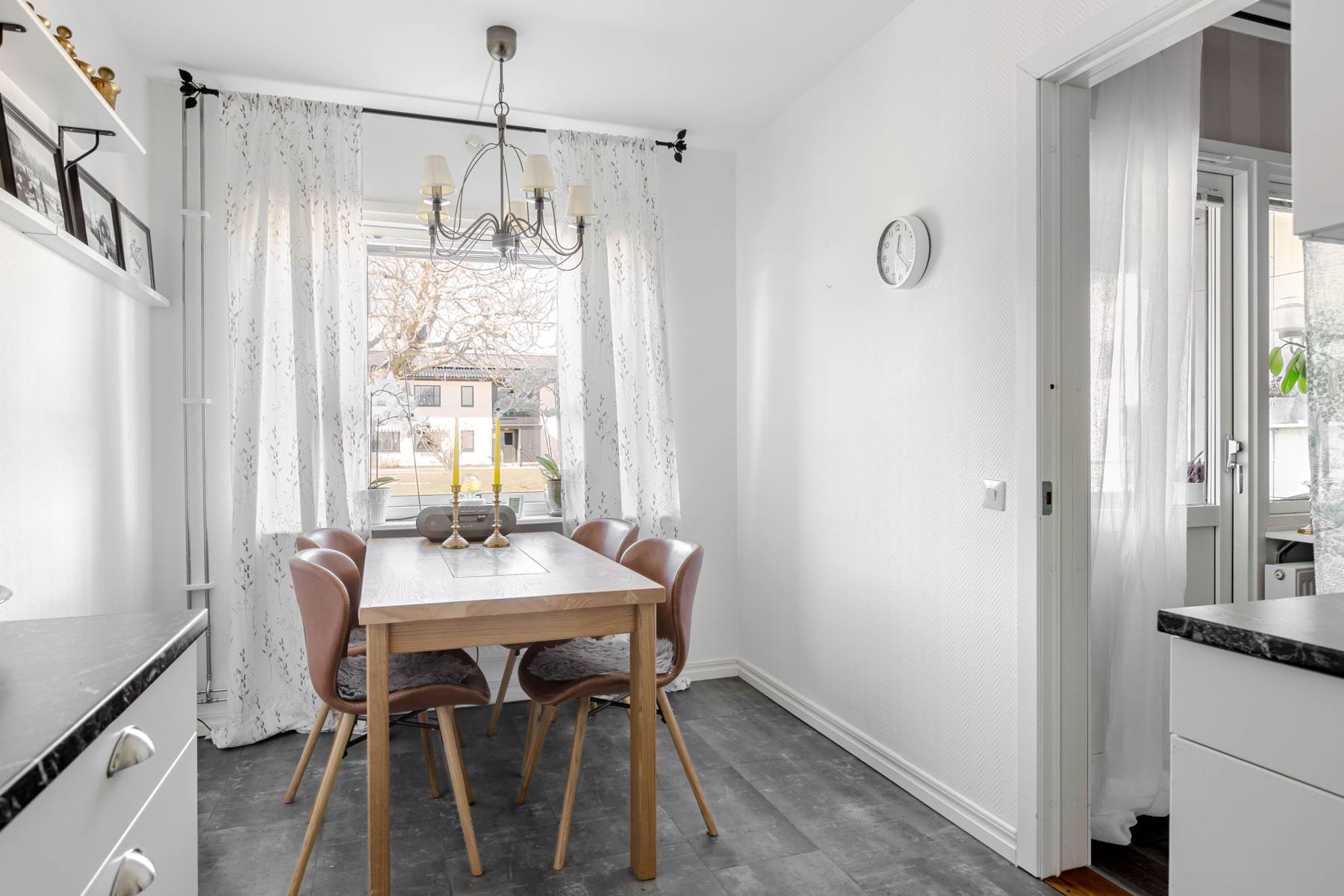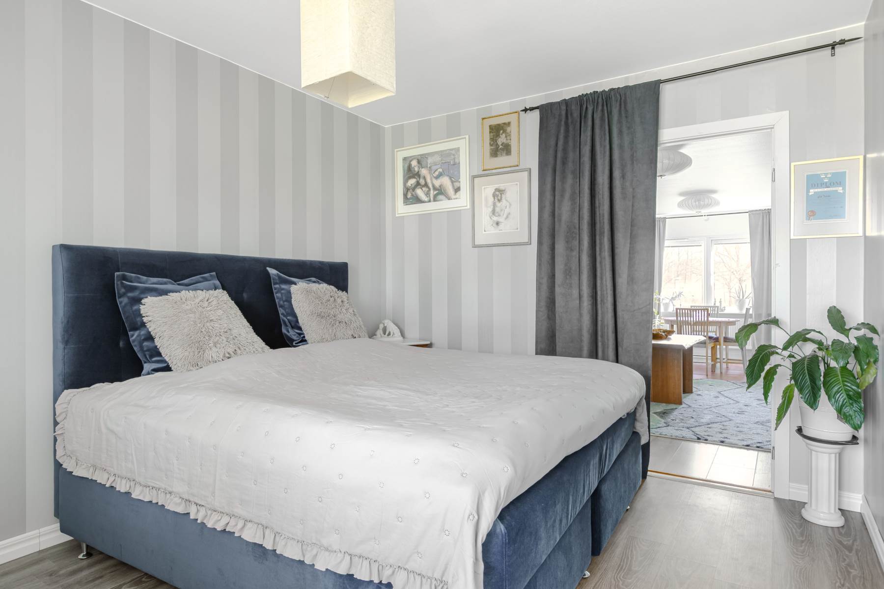 Utmärkt planlösning med fönster från två håll och ingång till sovrummet från såväl köket som vardagsrummet skapar luftighet och ökar upplevelsen av rymd.