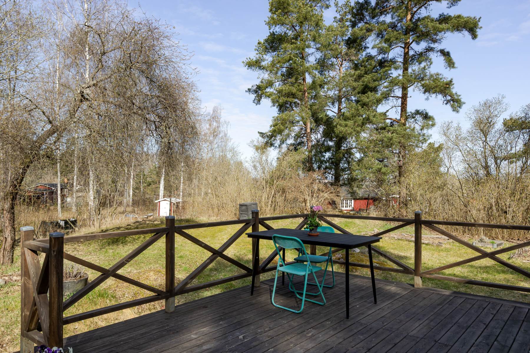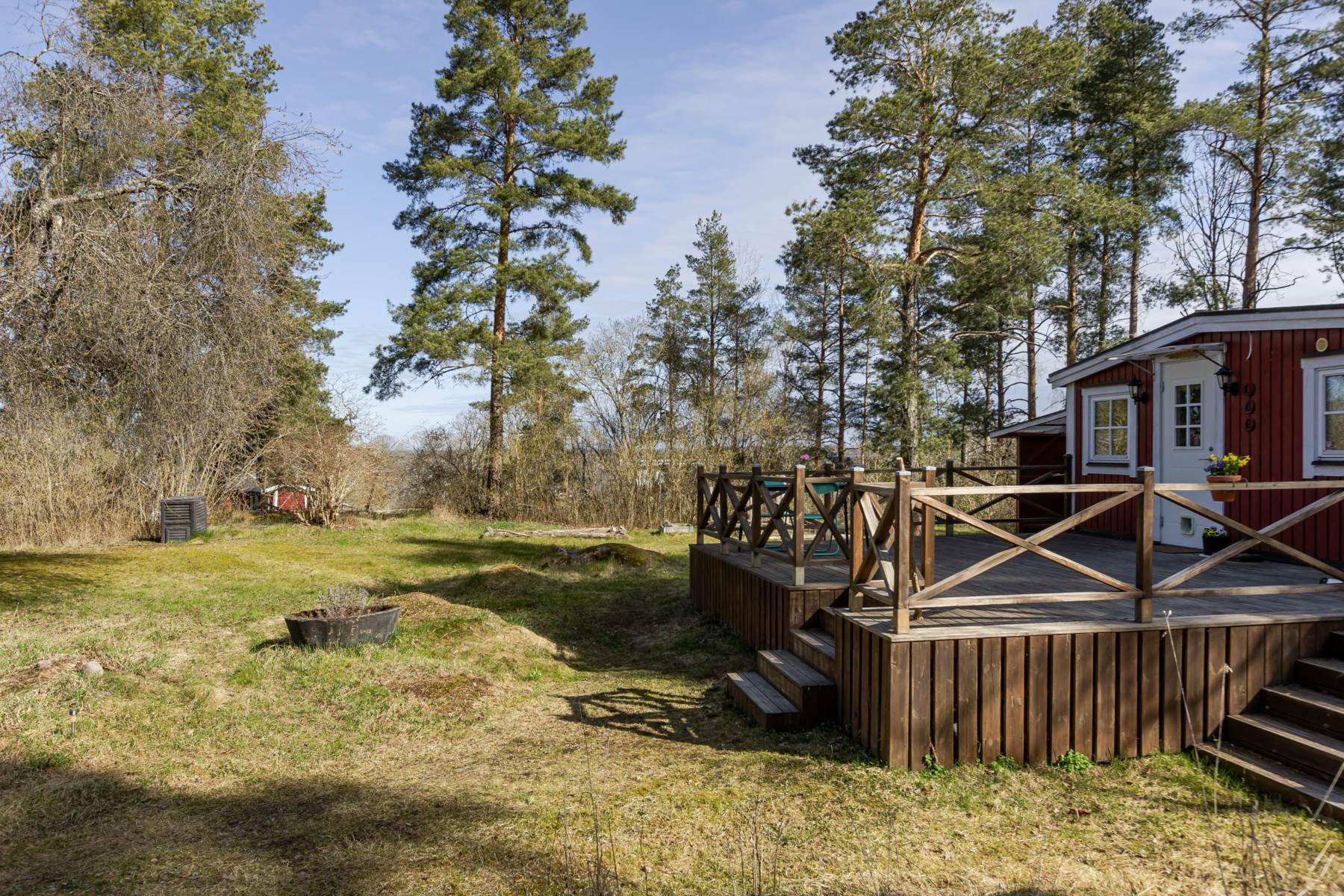 Från stugan nås en härlig altan med sydväst läge – en perfekt plats att koppla av på och njuta av långa, varma sommarkvällar.
