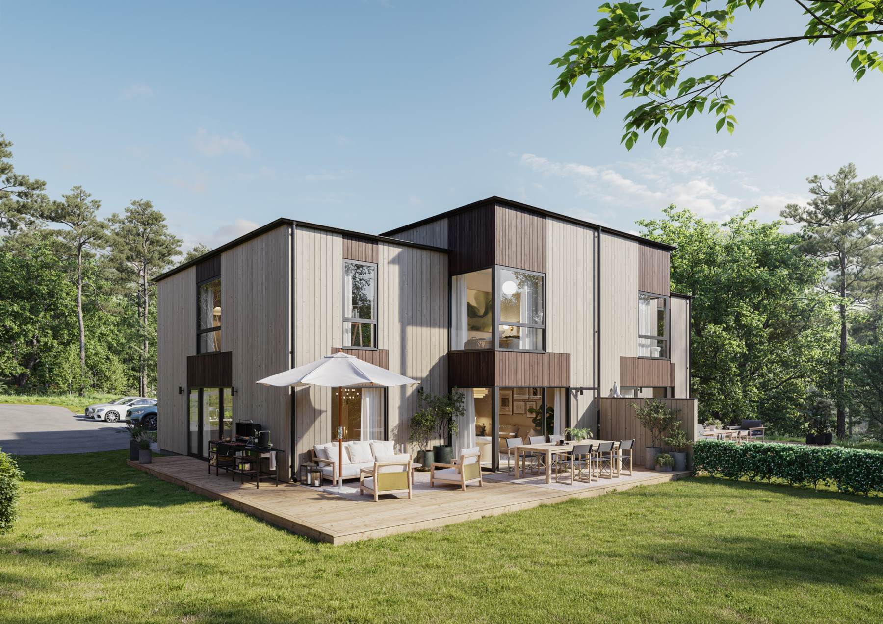 I Enebyberg, ett av Danderyds mest eftertraktade villaområden, utvecklas Brf Danderyd Park – ett modernt och välplanerat nyproduktionsprojekt bestående av 10 parhus med genomtänkt gestaltning och exklusiva materialval. Projektet är utformat för att ansluta till omgivande villabebyggelse, där arkitekturen präglas av rena linjer, träfasader och en diskret och välkomponerad färgsättning.